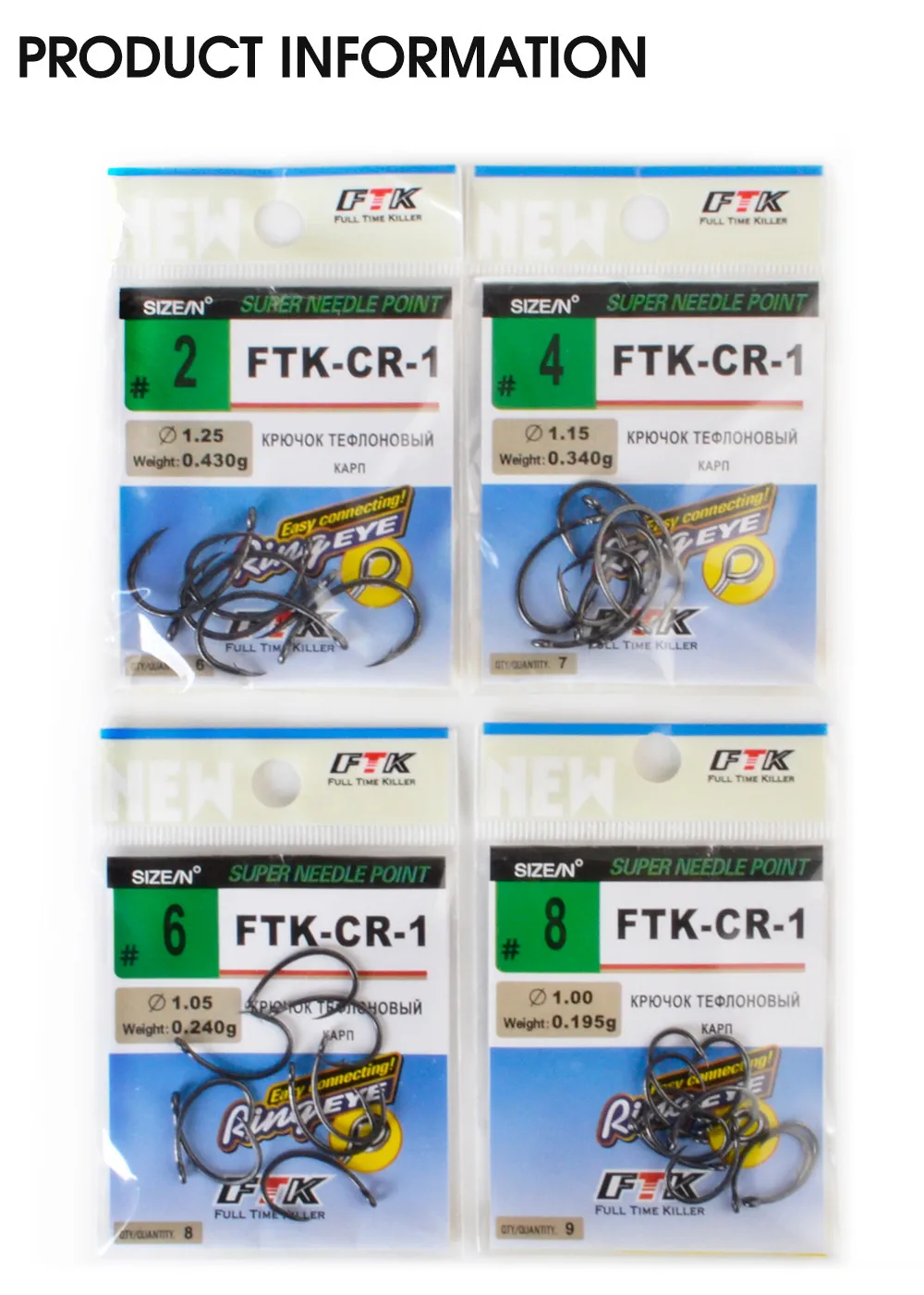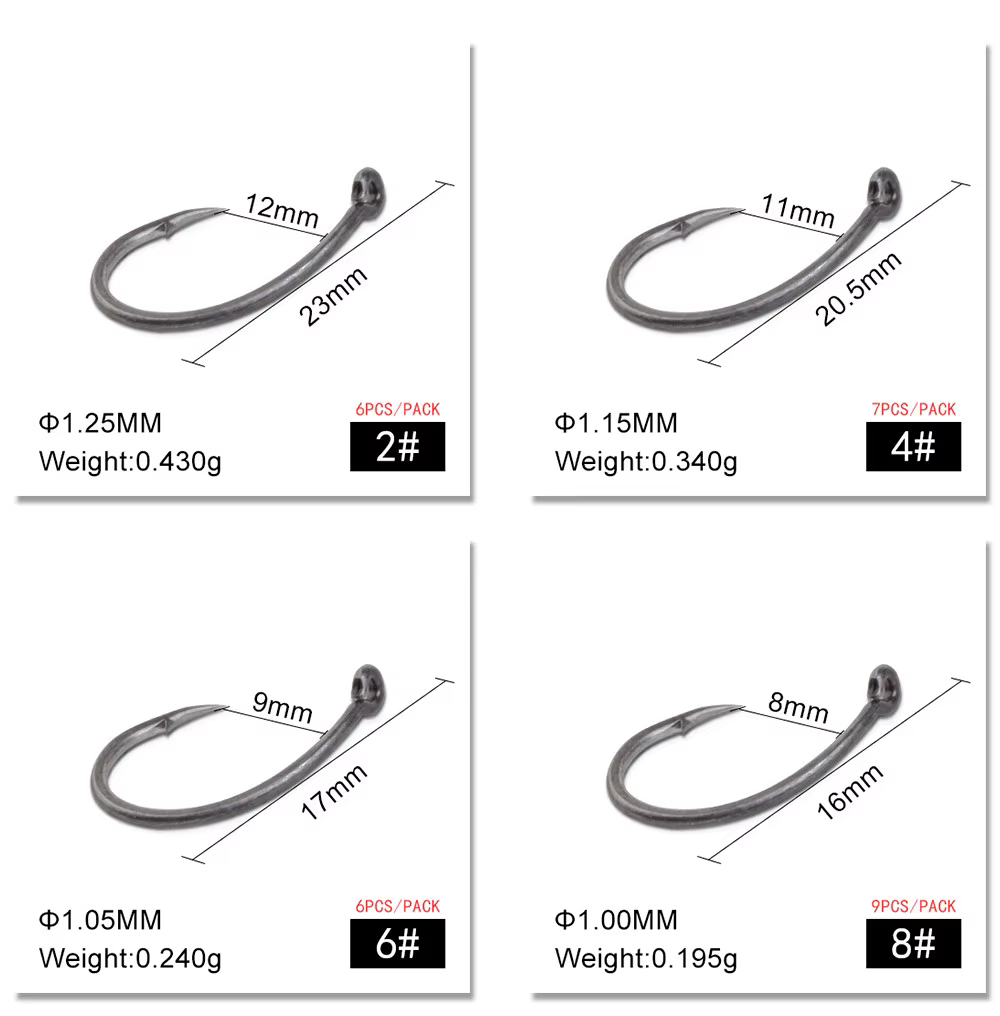 FTK 6-9PCS Anzuelo de pesca de carpa circular de acero rico en carbono con anillo negro mate 2/4/6/8 # Ganchos individuales con púas europeas de agua dulce