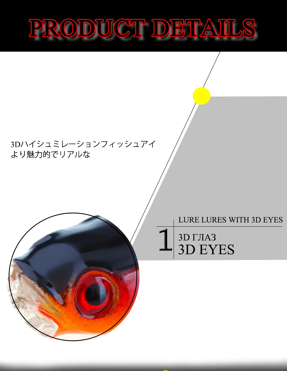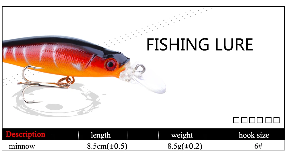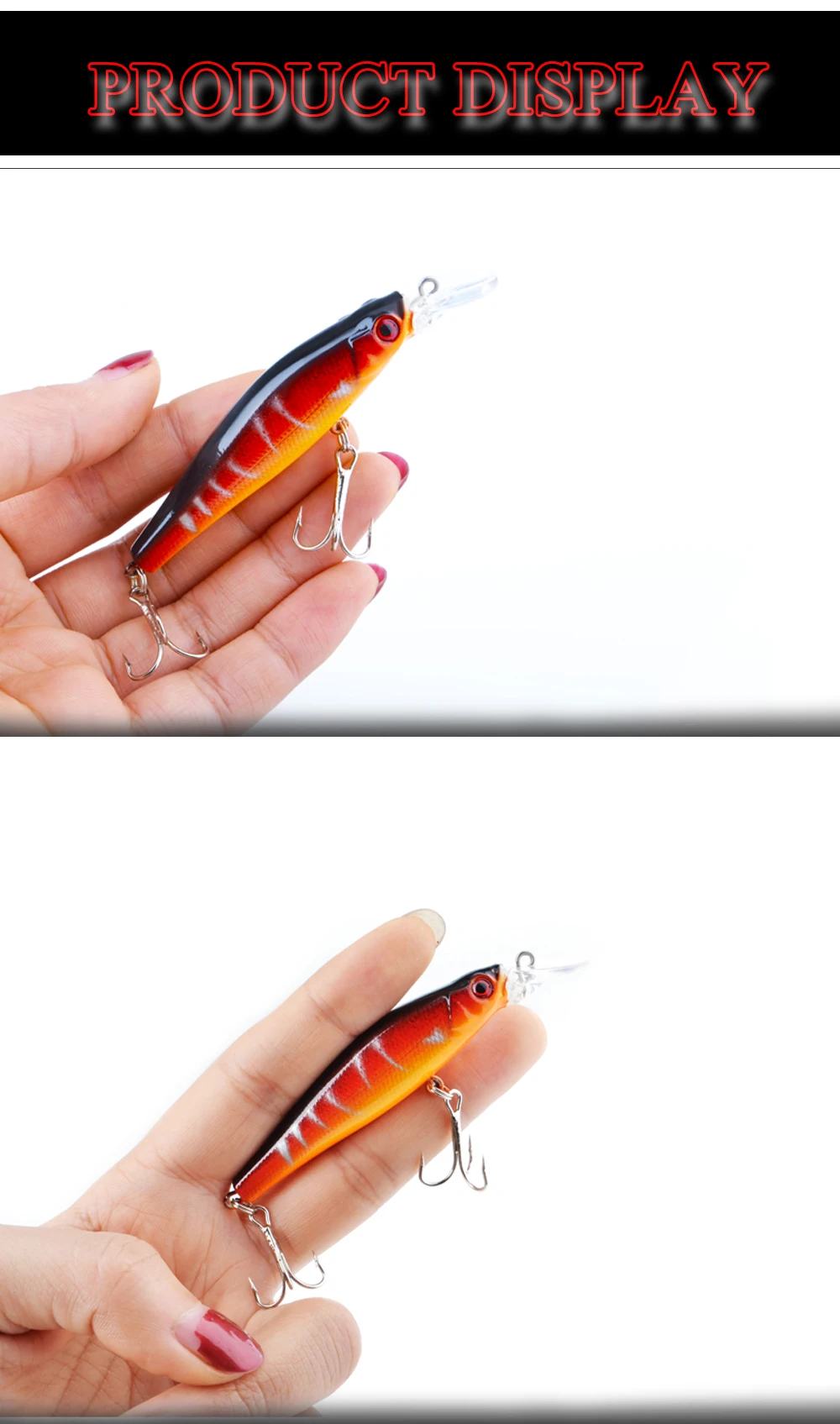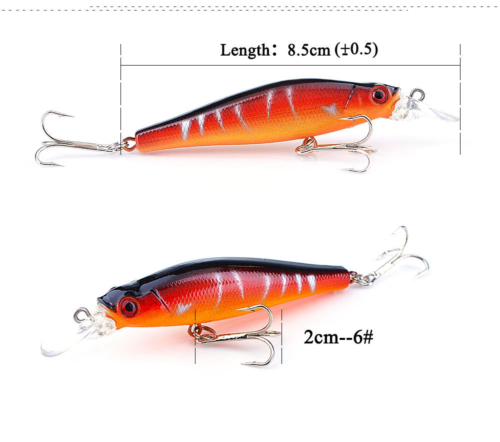 FTK 8,5g 8,5 cm señuelo de pesca Minnow ojos 3D cebo Artificial duro señuelos nadar Jerkbait Wobblers aparejos de pesca