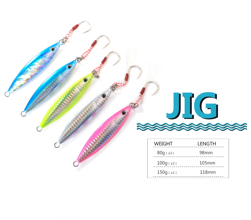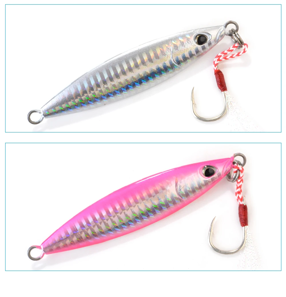 FTK 80g 100g 150g Señuelos de plantilla de metal Señuelos de pesca de aguas profundas Ojos 3D Jigging lento Cebo artificial duro