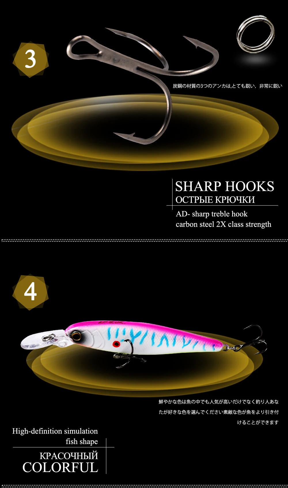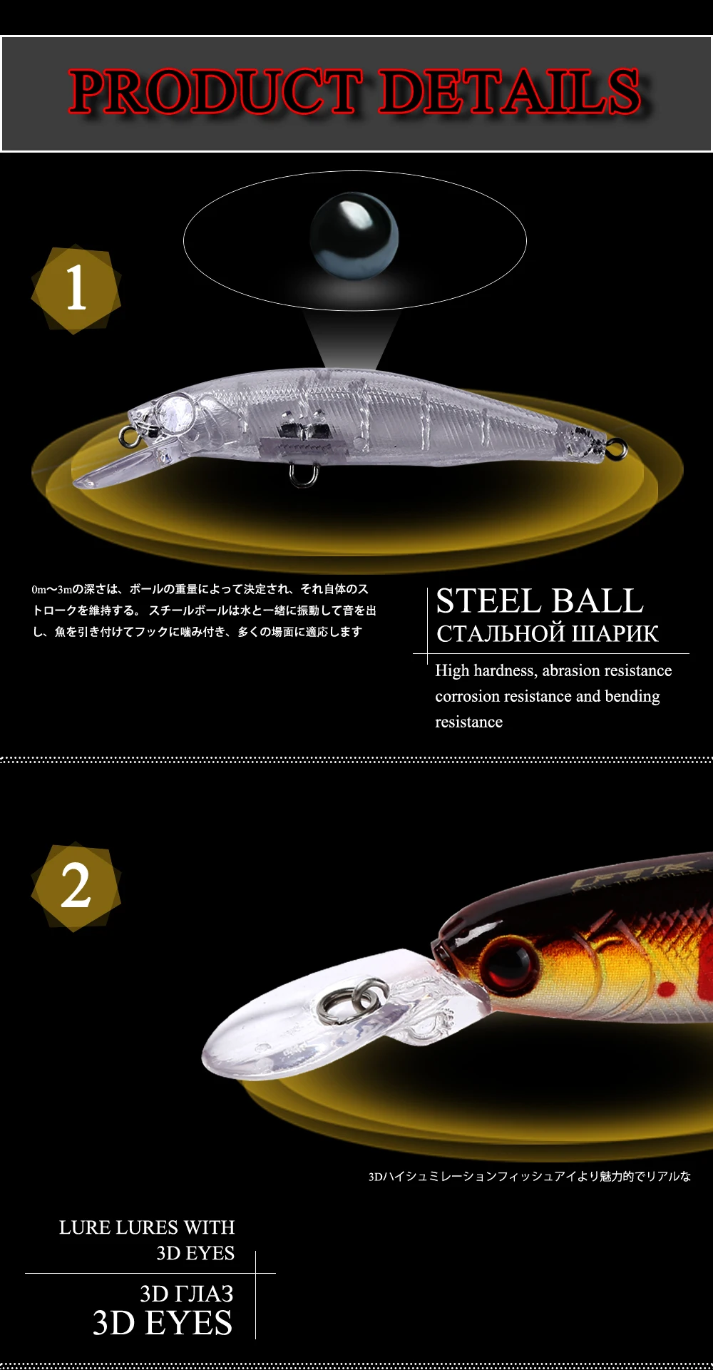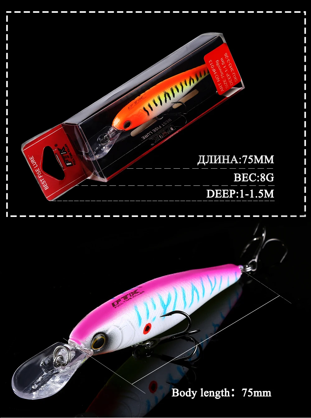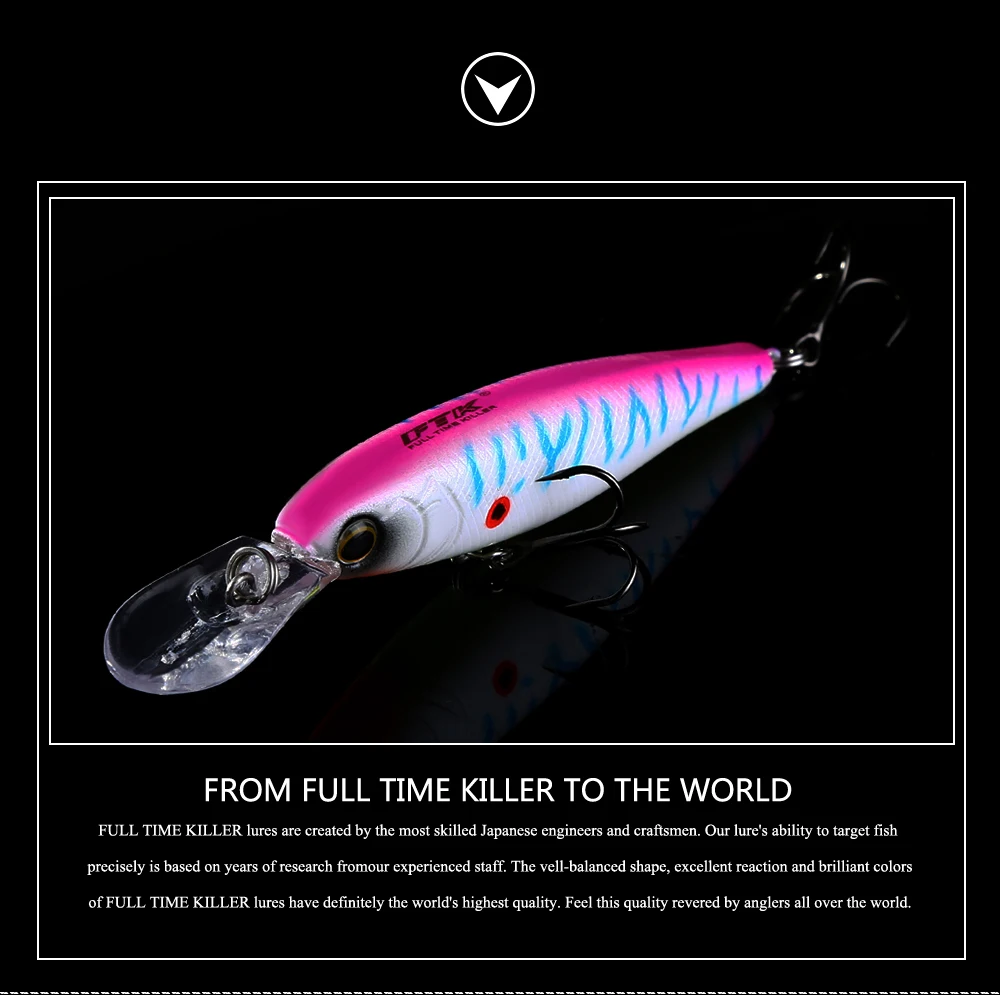 FTK 8g ojos 3D que se hunden Minnow Señuelos de pesca duros 7,5 cm Swimbait cebo de pesca Artificial lubina Jerkbait Crankbait