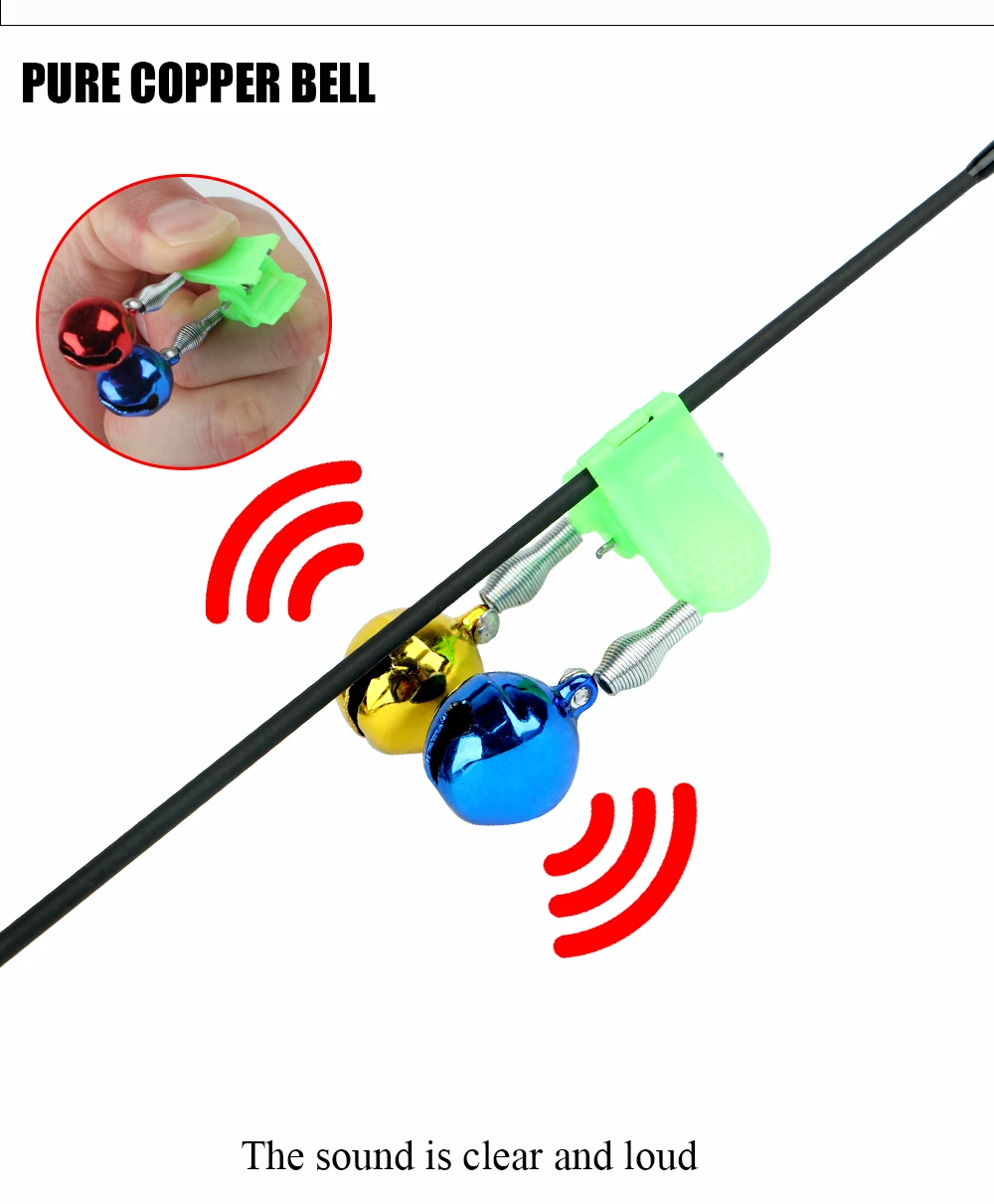 FTK-abrazadera de punta de caña de pescar, 10 piezas, señuelo de mordida de pez, alerta de alarma, anillo de campana doble, Clip, campanas de pesca, accesorio de pesca