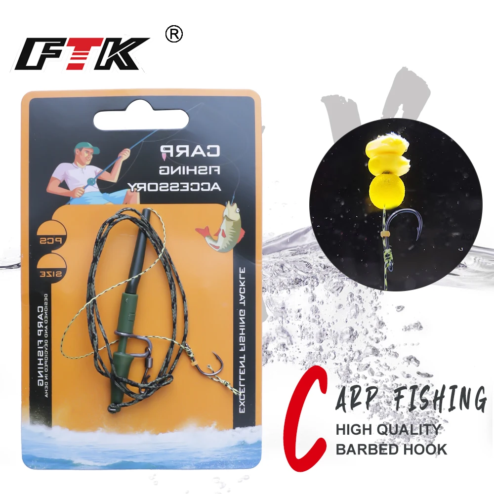 FTK-accesorios de pesca de carpa, aparejo para el pelo, juego de anzuelos de pesca, aparejo atado listo para usar con sedal, anzuelo Boilie para aparejos de carpa