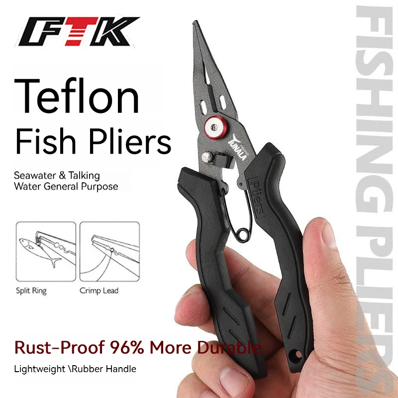 FTK alicates de pesca, cortador de alambre de acero inoxidable para cortar anzuelos, cortadores de trenza, alicates de prensado, removedor de anzuelos, equipo de pesca