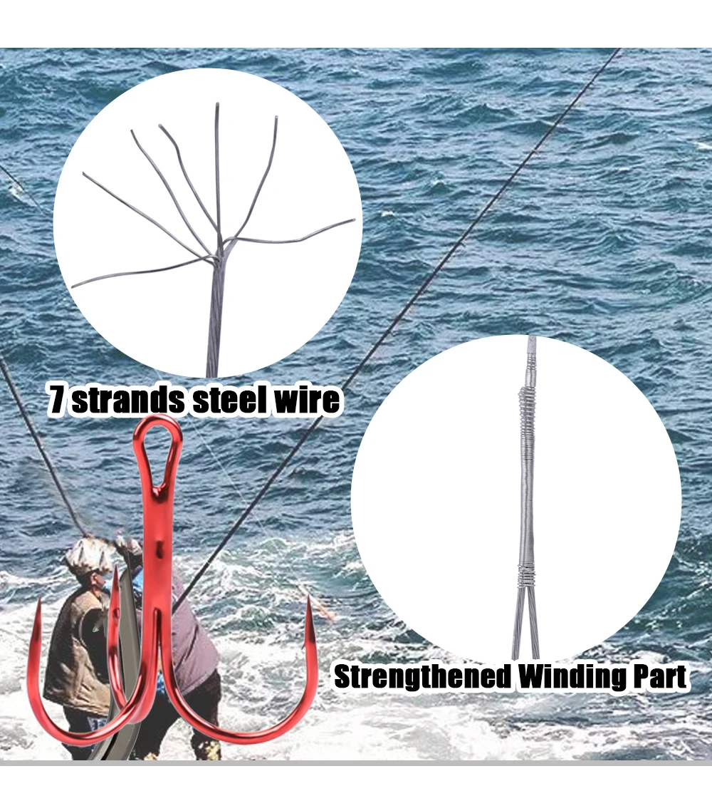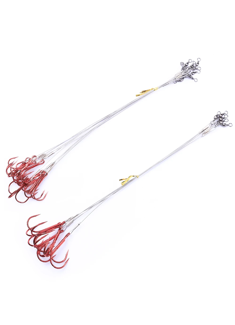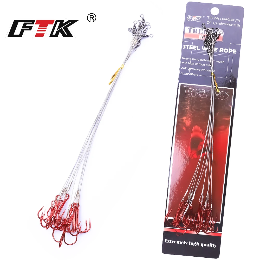 FTK-anzuelo de pesca de acero de alto carbono, alambre de acero con cuerda de anzuelos triples, anzuelo rojo para carpa, accesorios de pesca de lubina