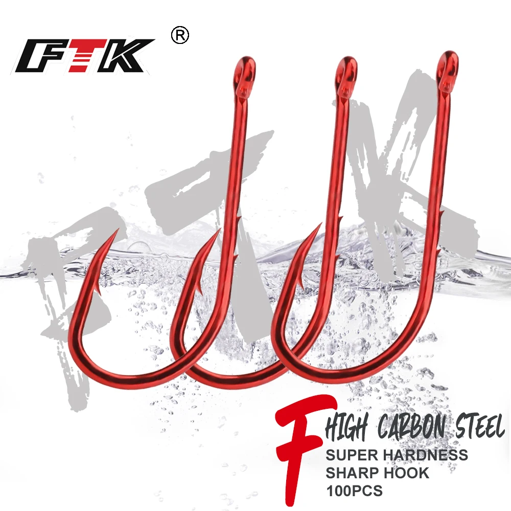 FTK Anzuelo de pesca de acero con alto contenido de carbono, doble púa, rojo, 1/0 # -4/0 # 50 piezas 1 # -10 # 100 Uds anzuelo Baitholder anzuelo pesca de carpa