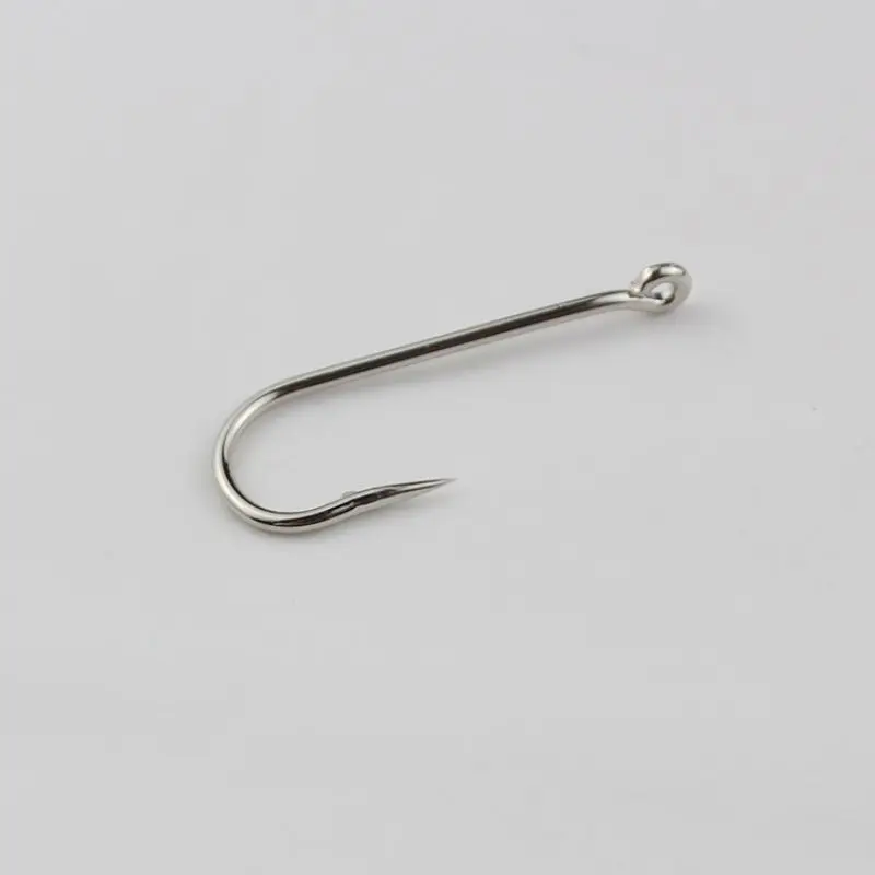 FTK-anzuelo de pesca de acero inoxidable, 50 piezas/100 piezas, con mango largo, con anillo y púas, para lubina