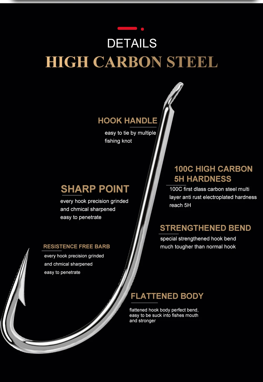 FTK-anzuelo de pesca de agua salada, aparejos de pesca de acero de alto carbono, con púas y manivela, Color blanco, 100 piezas