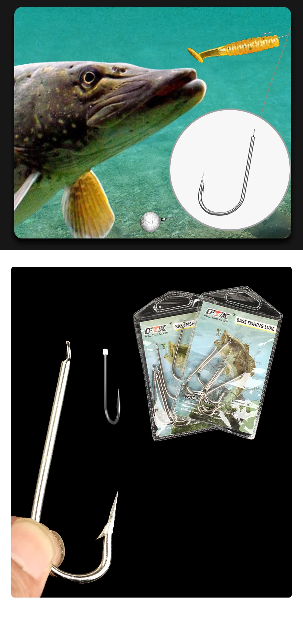 FTK-anzuelo de Pesca de Mar, gancho de púas de acero de alto carbono, gusano redondo plano para carpa oceánica, accesorios de pesca de lubina, 5 unids/lote por paquete
