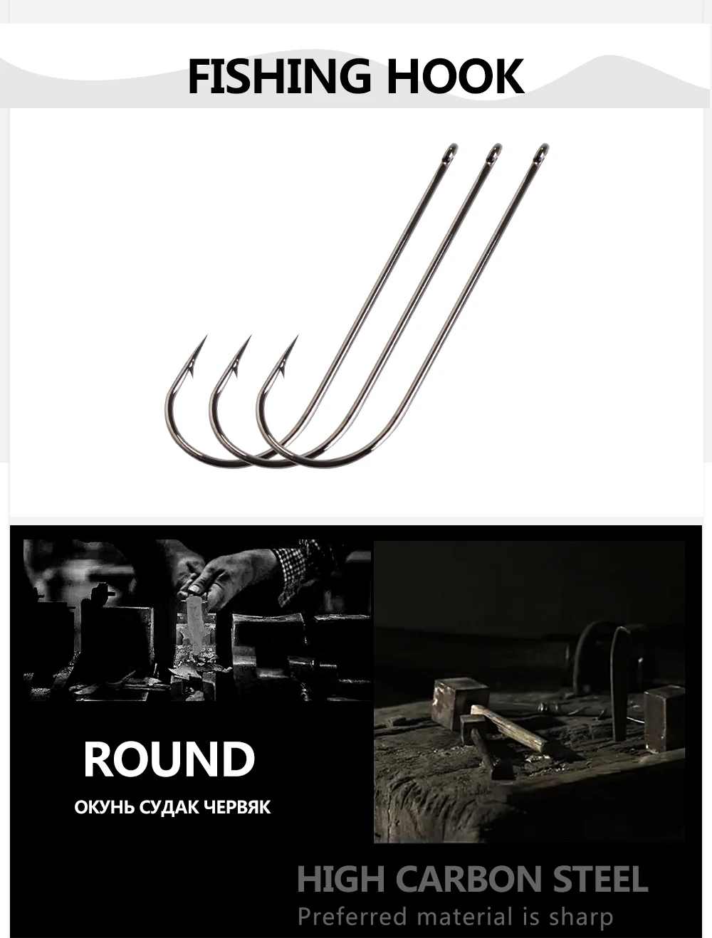FTK-anzuelo de pesca de vástago largo, anzuelo de Baithook de acero rico en carbono, anillado cromado negro, anzuelo de púas afilado marino para accesorios de pesca