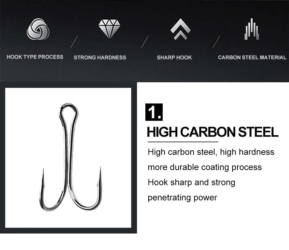 FTK-anzuelos dobles de acero de alto carbono, 10 piezas, con línea afilada, gusano de púas y señuelo, accesorio para pesca de carpa