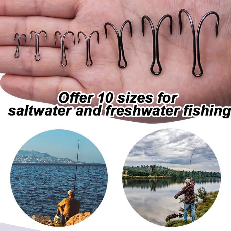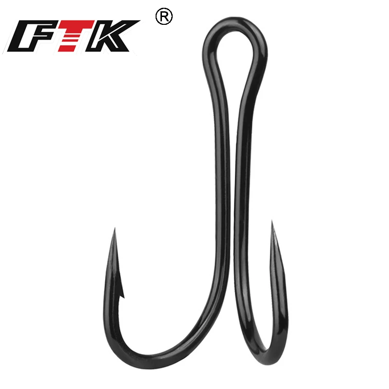 FTK-anzuelos dobles de pesca, 50 Uds., anzuelo clásico negro de acero rico en carbono, anzuelo de gusano afilado con púas, anzuelos de pesca de repuesto, señuelo