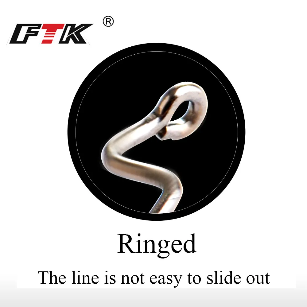 FTK-anzuelos de gusano suave para pesca, 50 unids/lote, 5/0 #-2 #, anzuelos de acero de alto carbono, anzuelos de bloqueo ancho, anzuelos suaves, aparejos de pesca