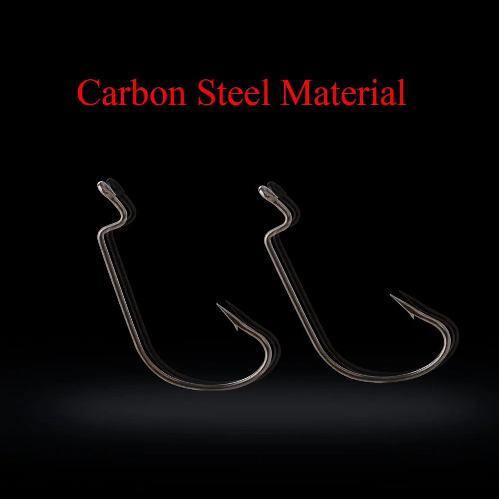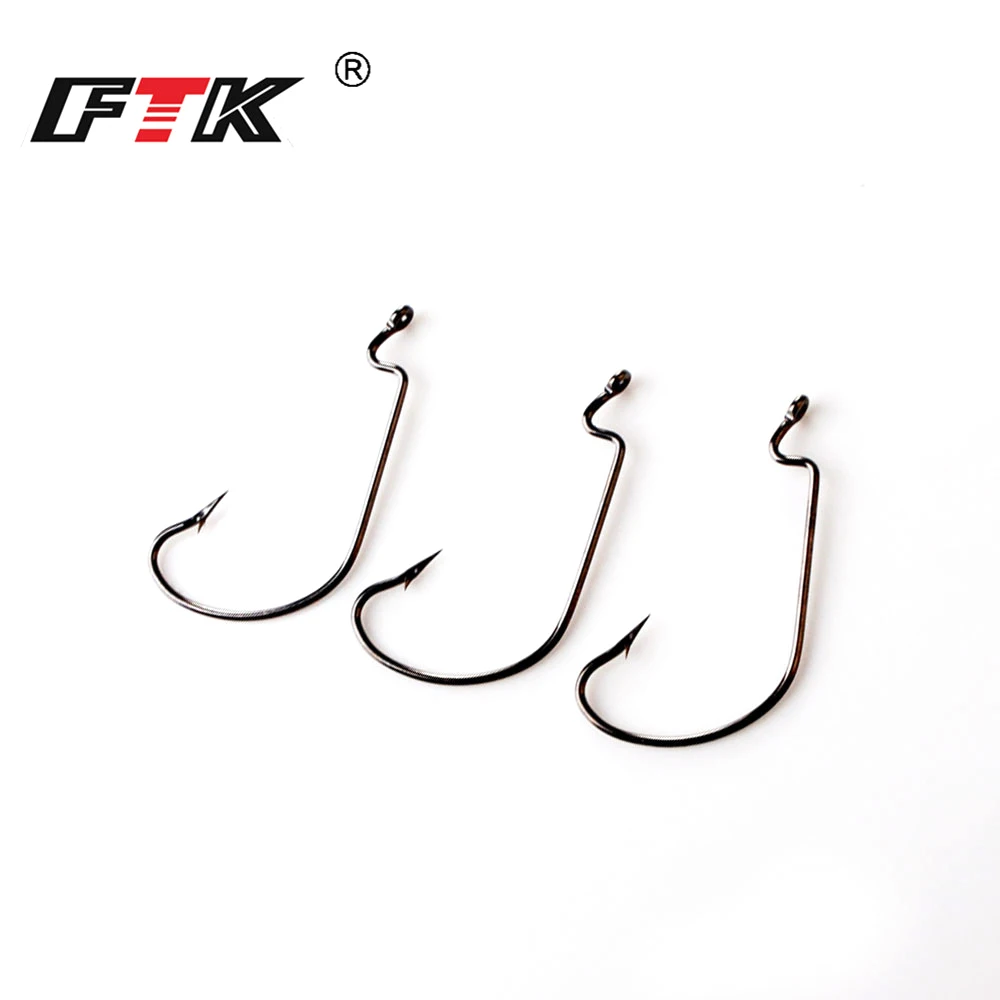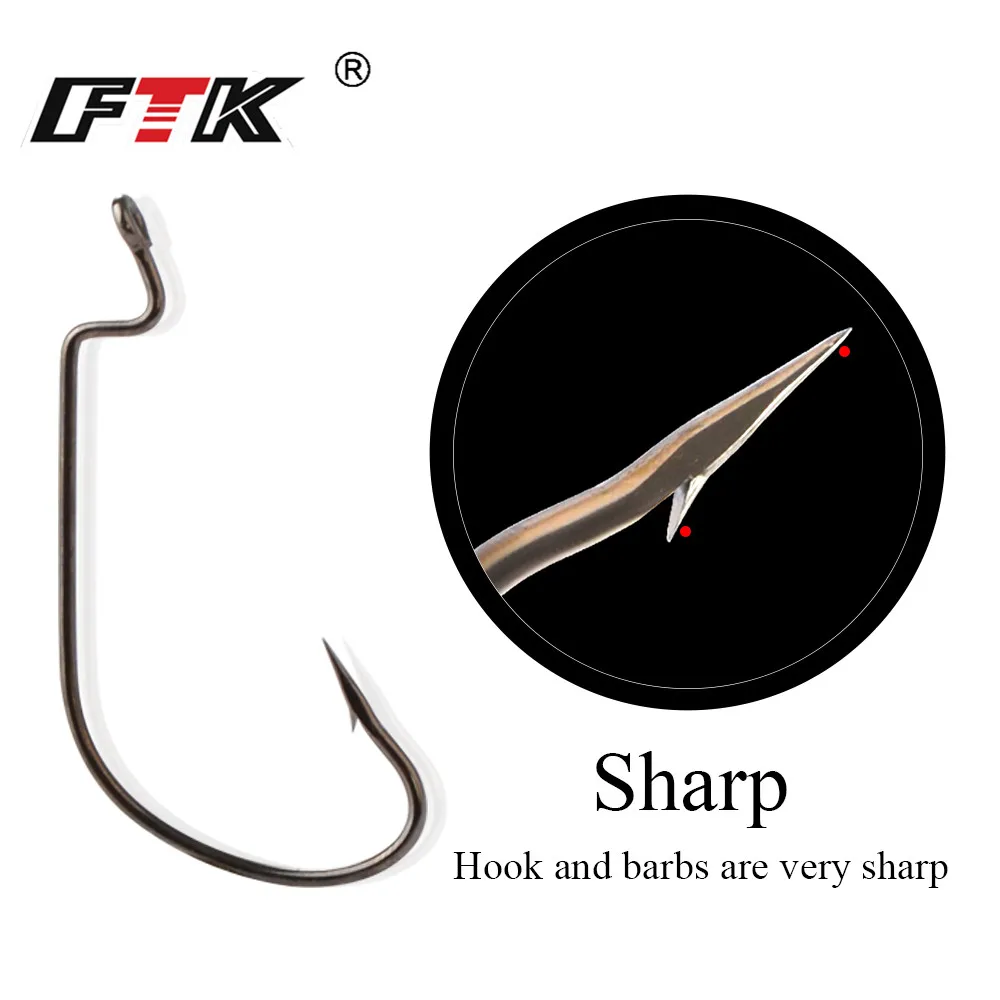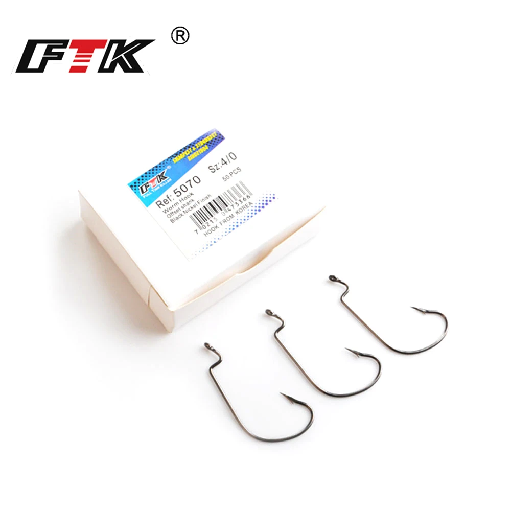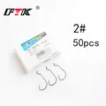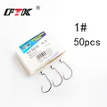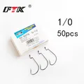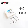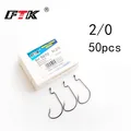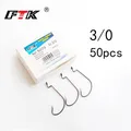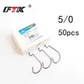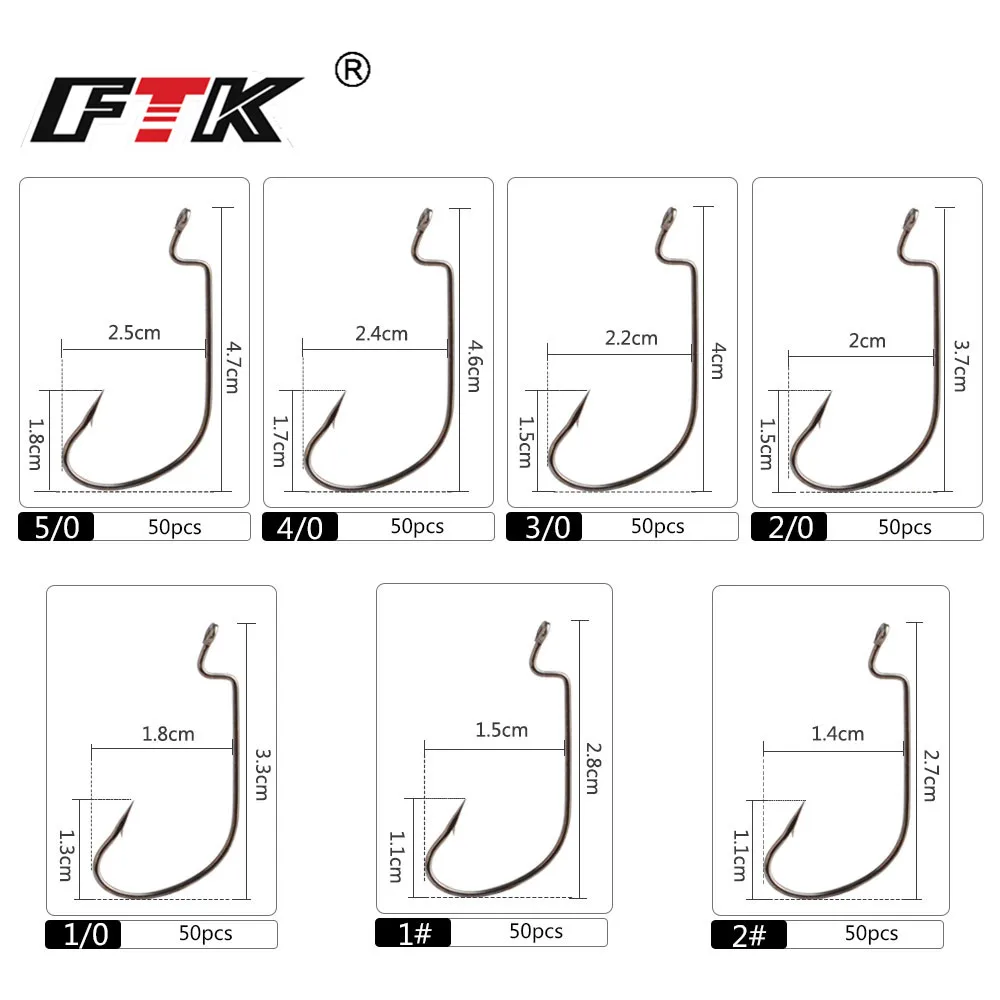 FTK-anzuelos de gusano suave para pesca, lote de 50 unidades, 5/0 #-2 #, anzuelos de acero de alto carbono, anzuelos de pesca anzuelos de bloqueo ancho, señuelo suave, aparejos de pesca