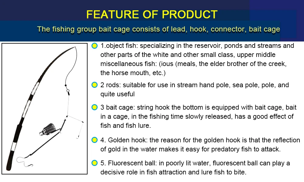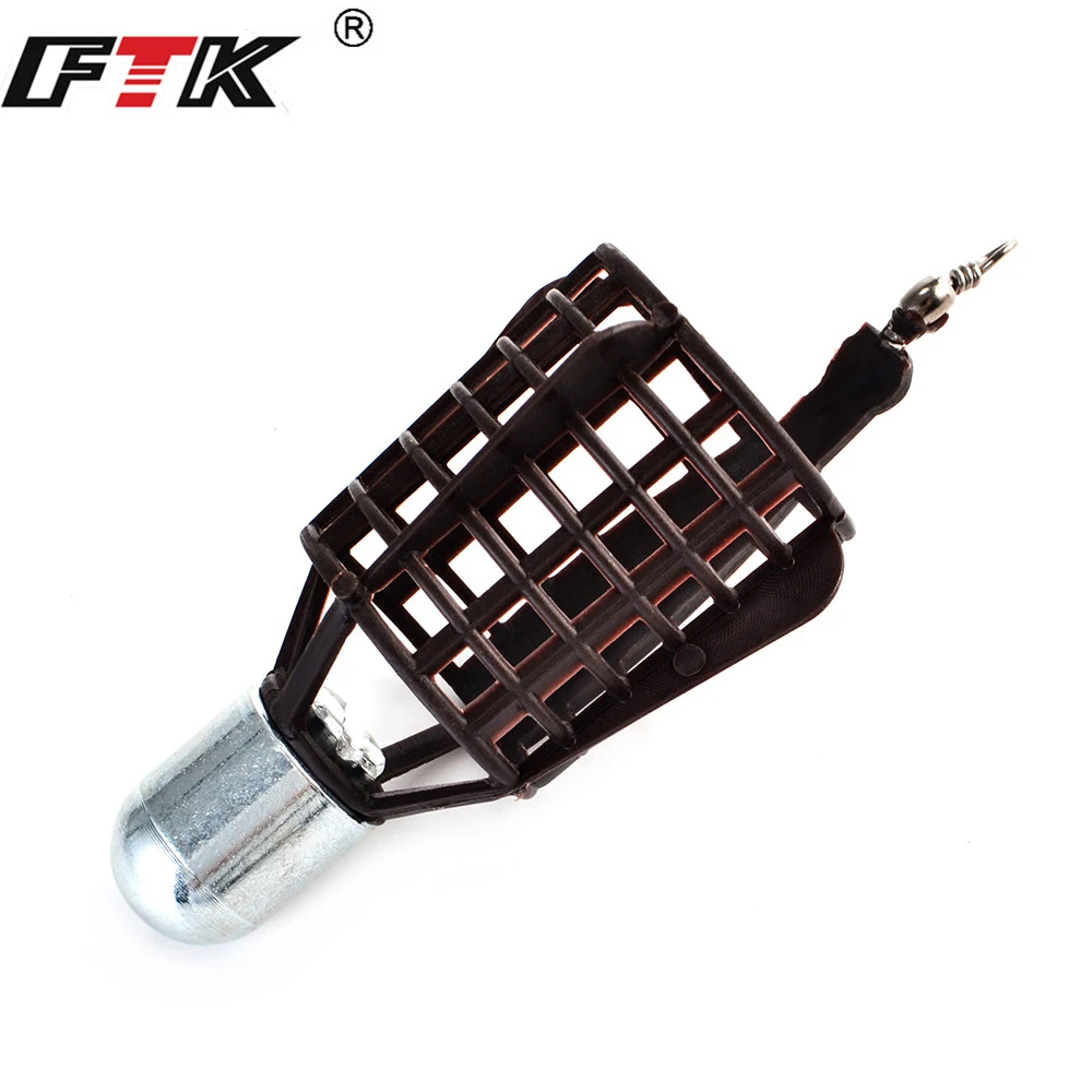FTK-anzuelos de pesca de 47CM, 20G-80G de longitud, dos anzuelos, alimentador de cebo, soporte de cesta, jaula de señuelo de pesca con accesorios de línea