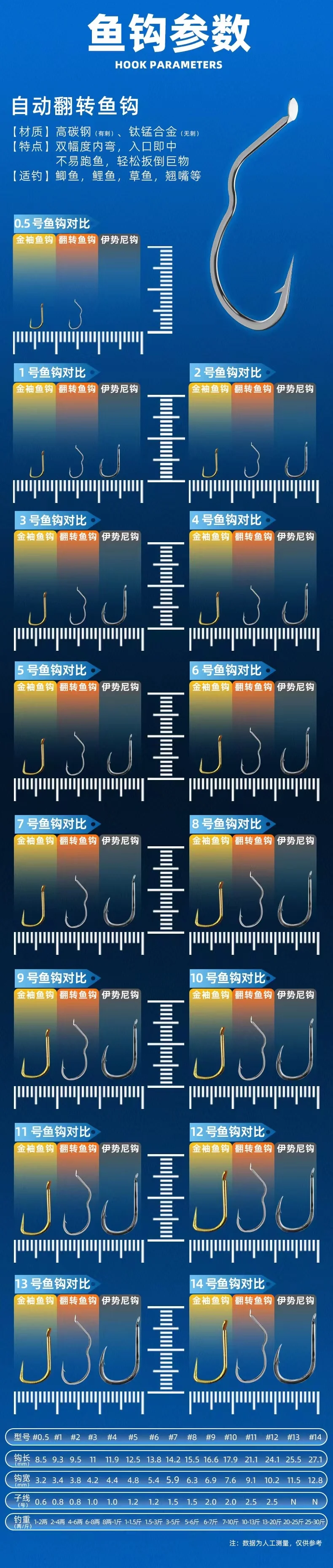 Los peces tienen la costumbre de tragar y escupir repetidamente los anzuelos para probar el peligro, y la presente invención está desarrollada para peces a los que les gusta escupir anzuelos. Esquinas redondeadas de doble ancho, entrada de anzuelo plana, el anzuelo se voltea automáticamente cuando el pez se cierra y abre la boca, de modo que la punta del anzuelo puede penetrar en la boca del pez, realizando así el apuñalamiento automático de peces
