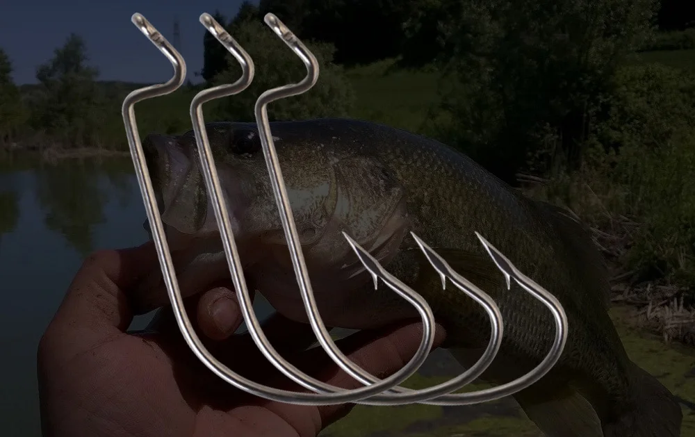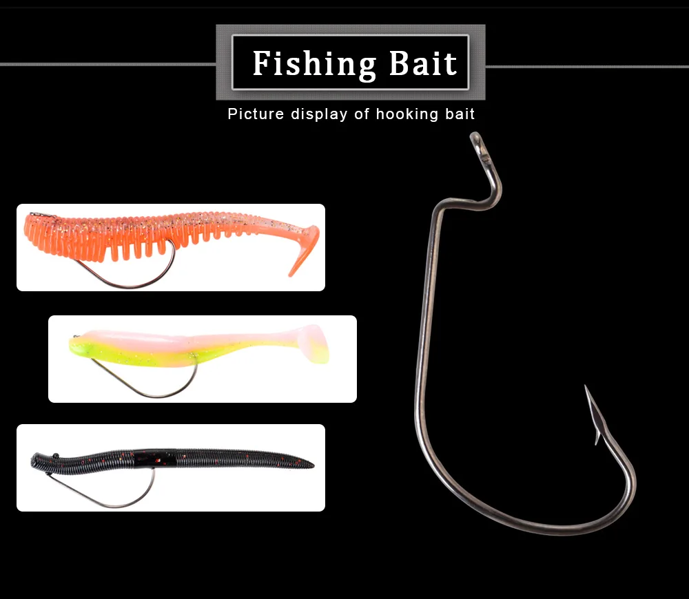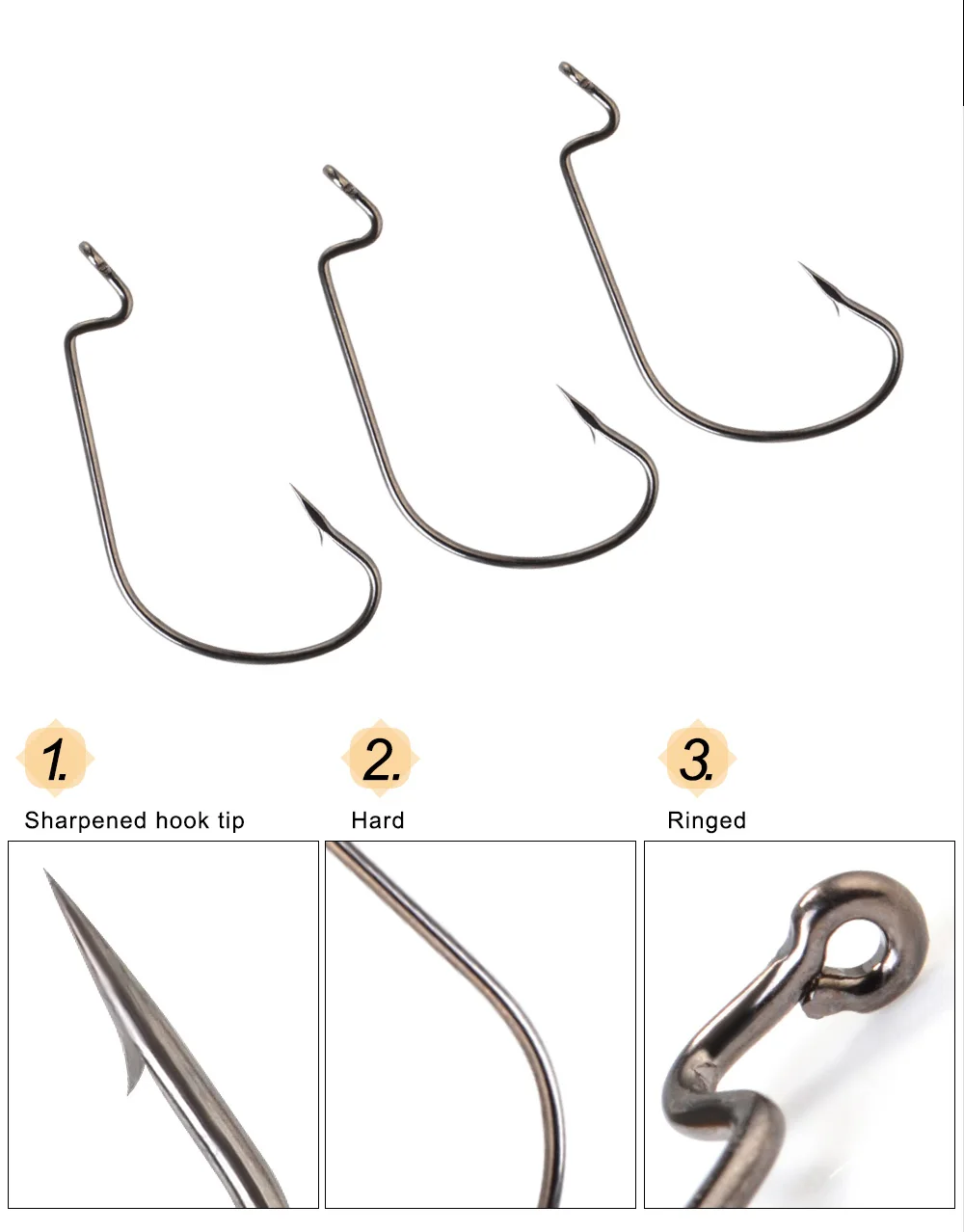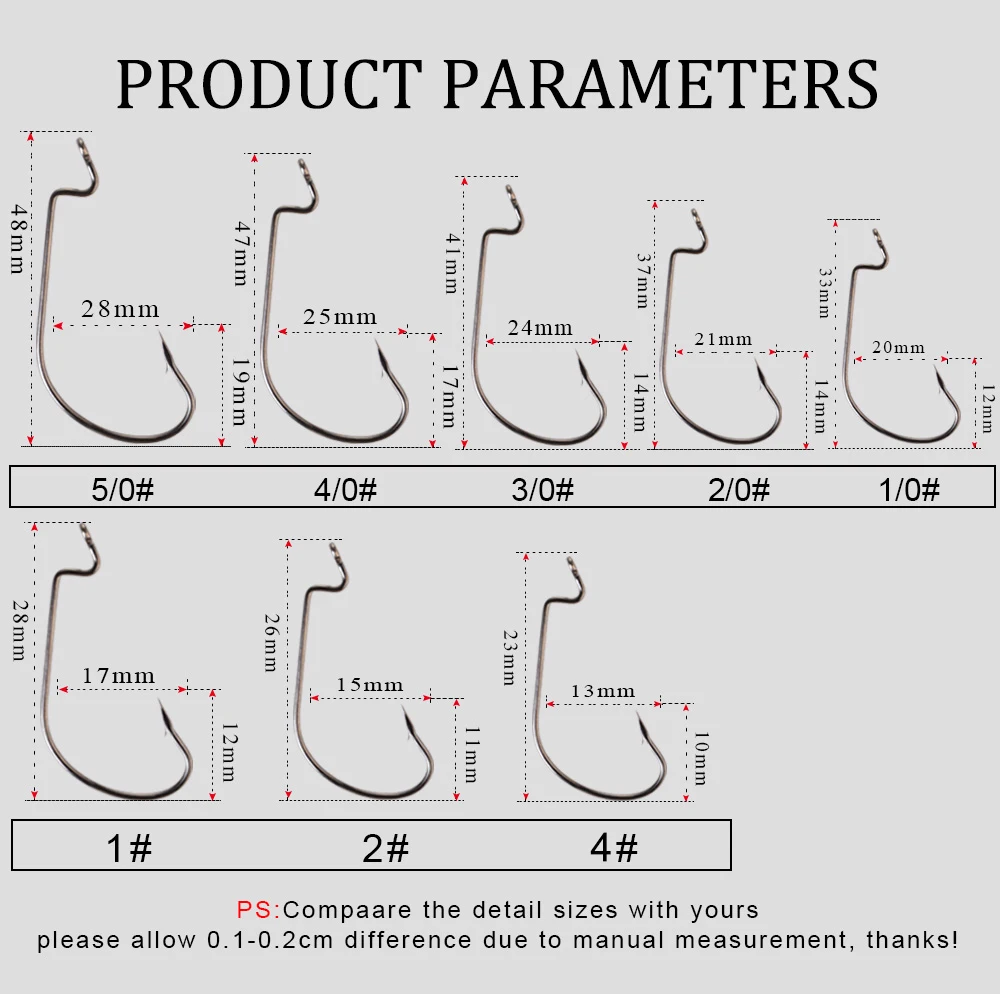 FTK-anzuelos de pesca Offset de 12-20 piezas, señuelos de gusano suave 5/0 #-4 #, aparejos de pesca con manivela anillada de acero de alto carbono