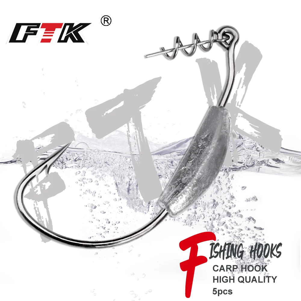 FTK-anzuelos de pesca Offset de 5 piezas, cebos blandos con púas, plantilla de gusano, aparejos de pesca para Texas Rigs, 2g3g4g5g7g