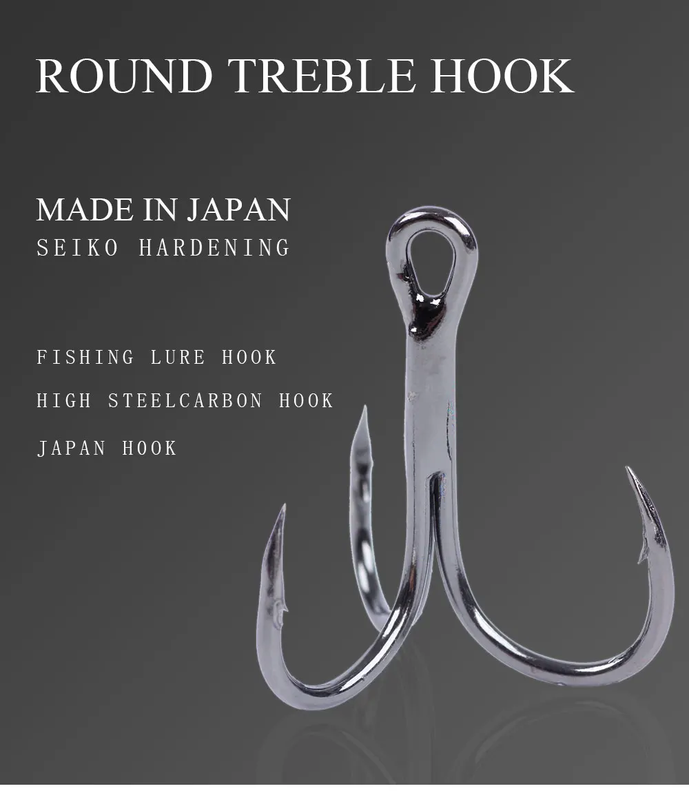 FTK-anzuelos triples redondos de acero de alto carbono, cebo de pesca japonés, Lucio, púas, anzuelos de alta calidad, 15-20 unids/paquete