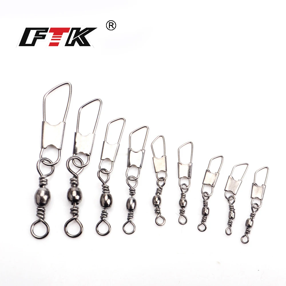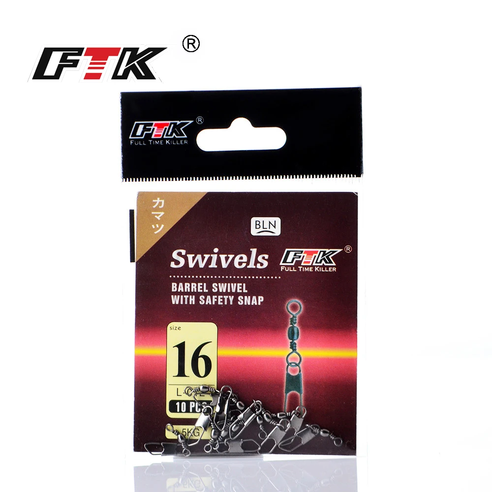 FTK-barril giratorio de pesca, Terminal de conector de señuelo, anzuelo a presión, tienda de aparejos de pesca, 1 paquete, 10 unidades por lote, 4 #-22 #