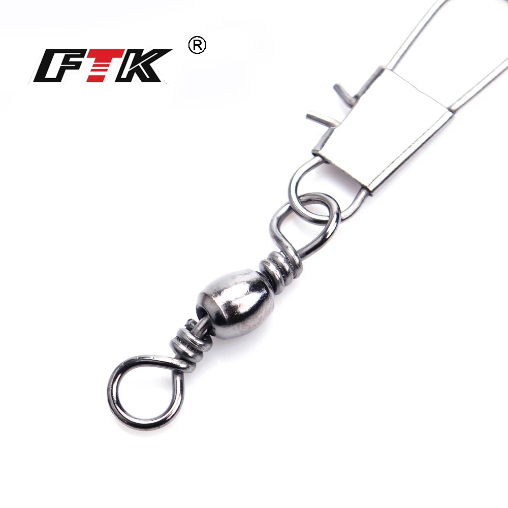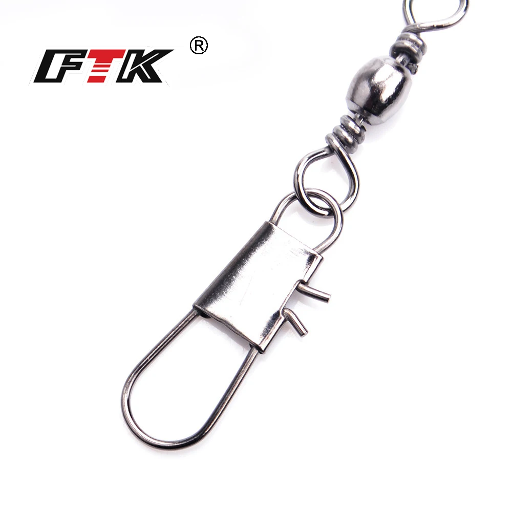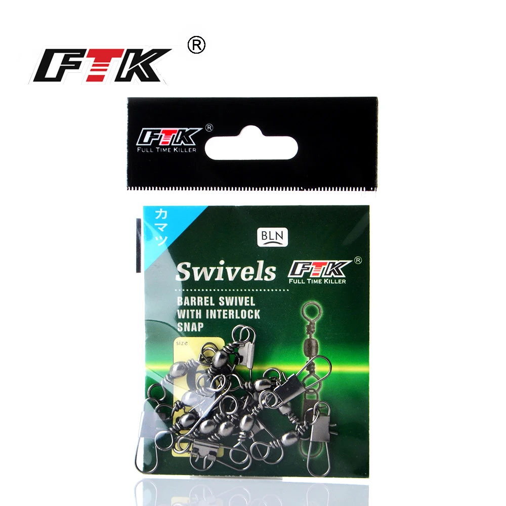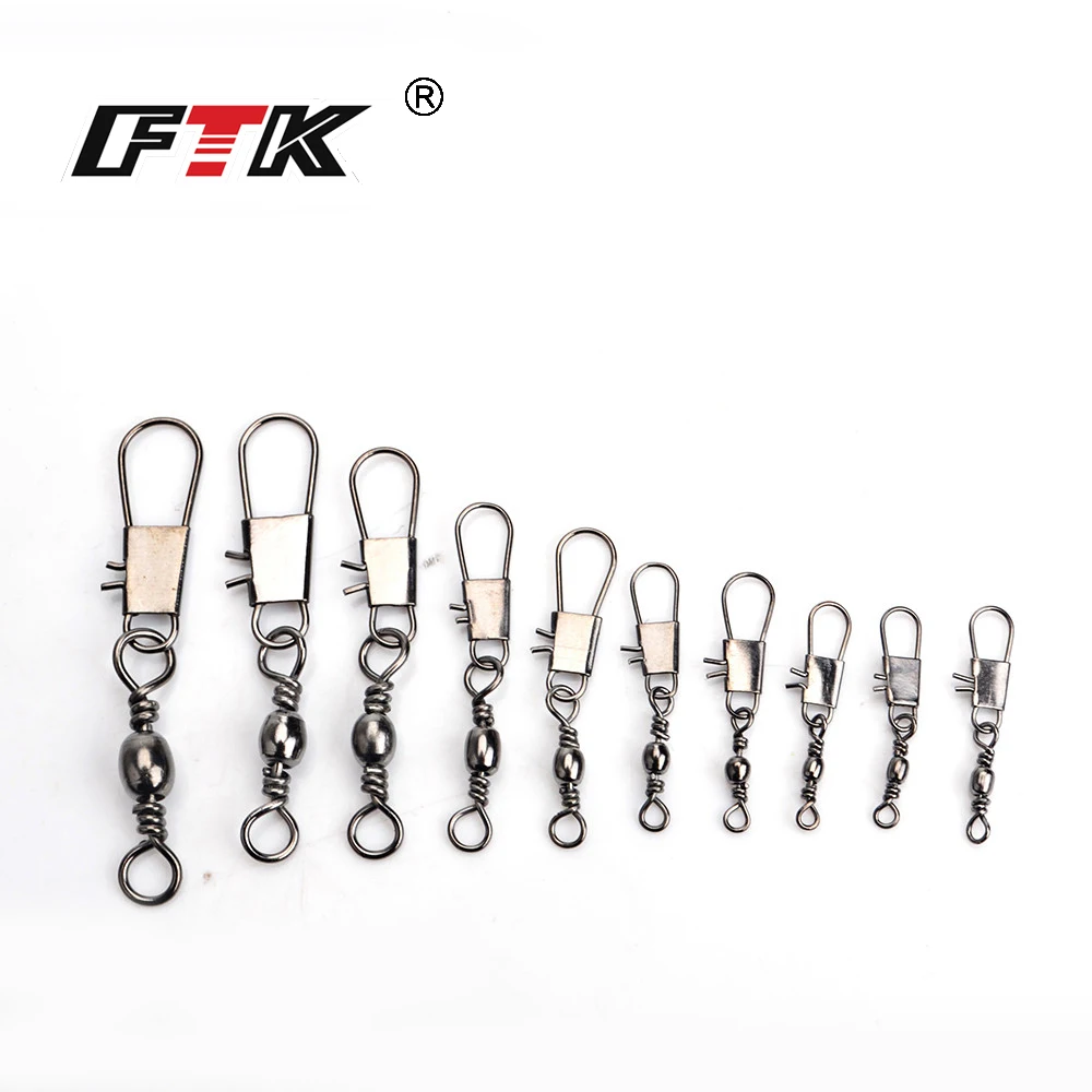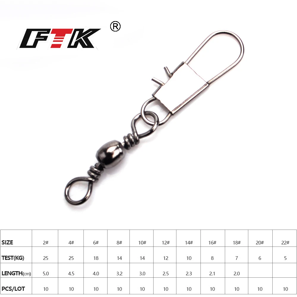 FTK-barril de Pesca giratorio con cierre a presión, 1 paquete de 10 unids/lote/paquete, 2 #-22 #, Terminal de conector de señuelo, aparejos de Pesca