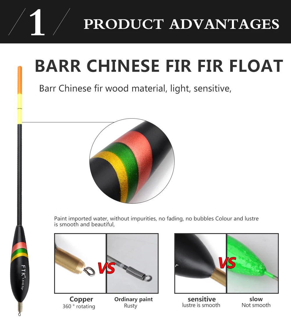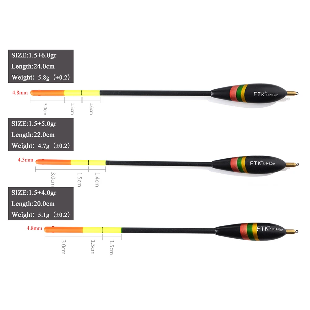 FTK-boya Vertical para pesca de carpa, accesorios para peche, Barguzinsky Fir Float, 4.0gr 1,5 +, 1,5 + 5.0gr, 1,5 + 6.0gr, lote de 3 unidades
