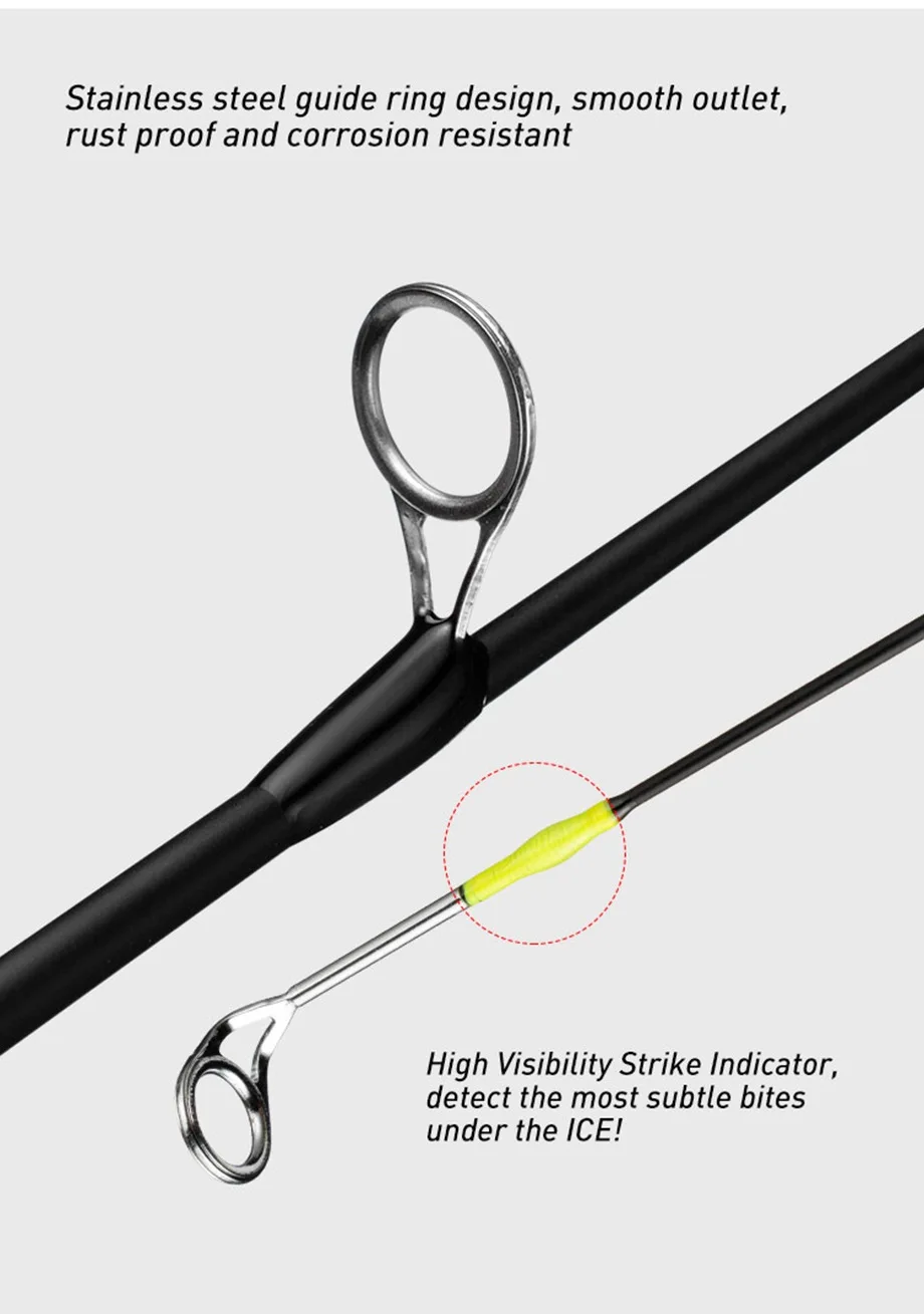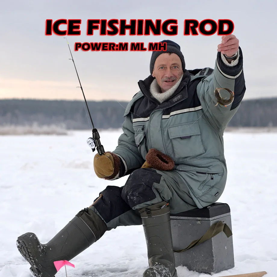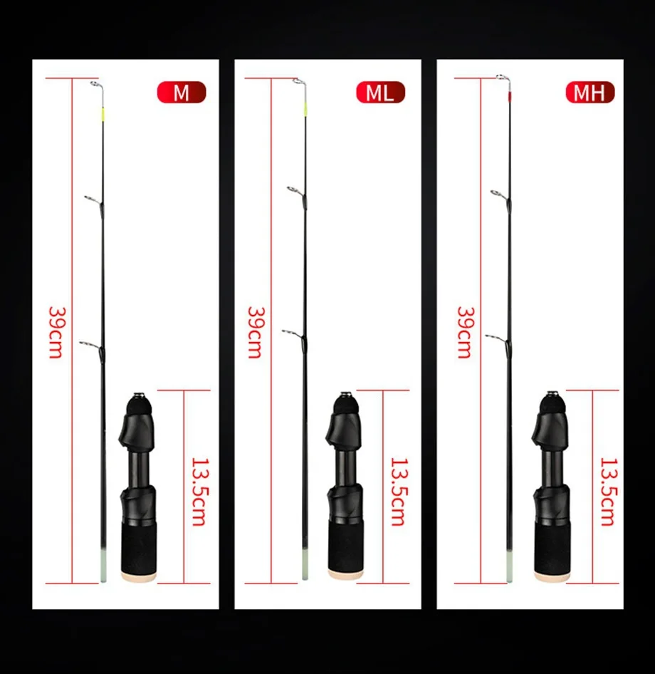 FTK-caña de pescar en hielo de 50cm, 2 puntas M/ML/MH, fibra de vidrio eléctrica, Mini caña telescópica portátil para pesca en hielo, aparejos de pesca de carpa de invierno