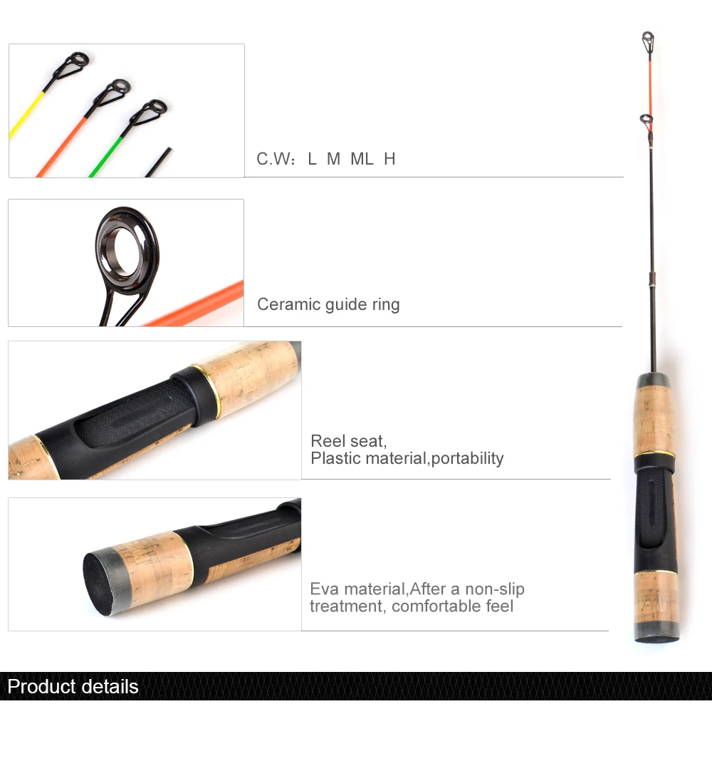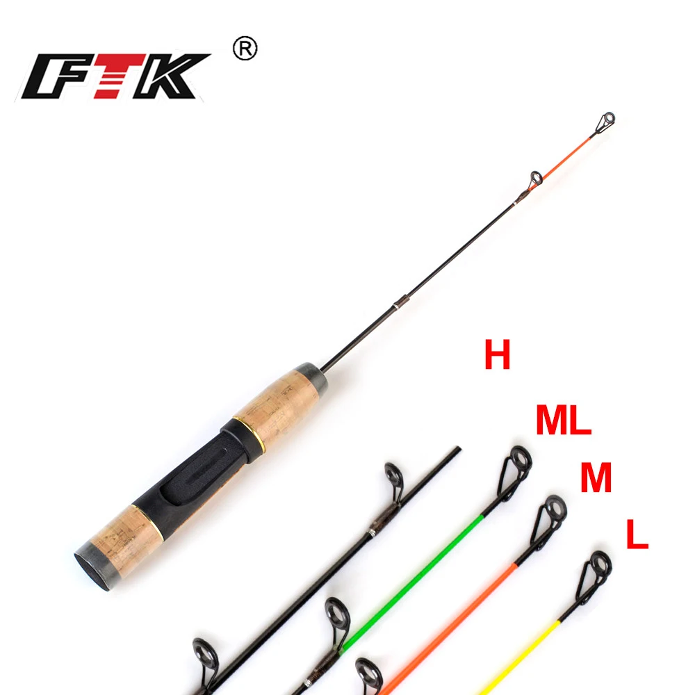 FTK caña de pescar en hielo de invierno, caña giratoria con cuatro puntas, mango de corcho EVA, 43cm, C.W, 2-30G