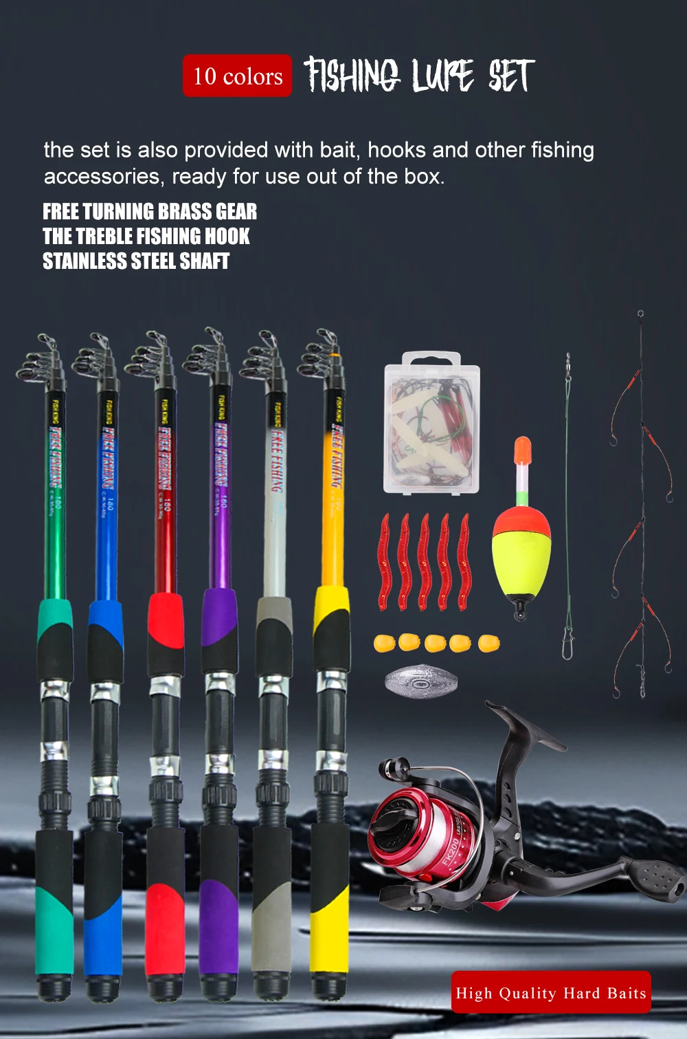 FTK caña de pescar giratoria y flotador de carrete Combo1.8M caña telescópica con carrete 5,2: 1 arrastre máximo 5kg Kit de pesca completo juego de pesca