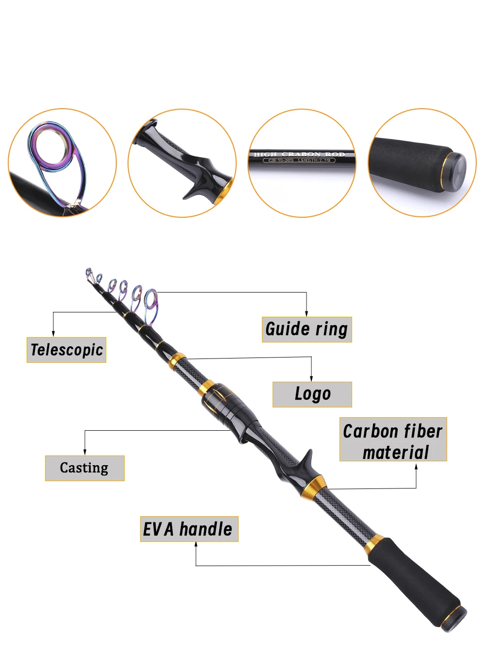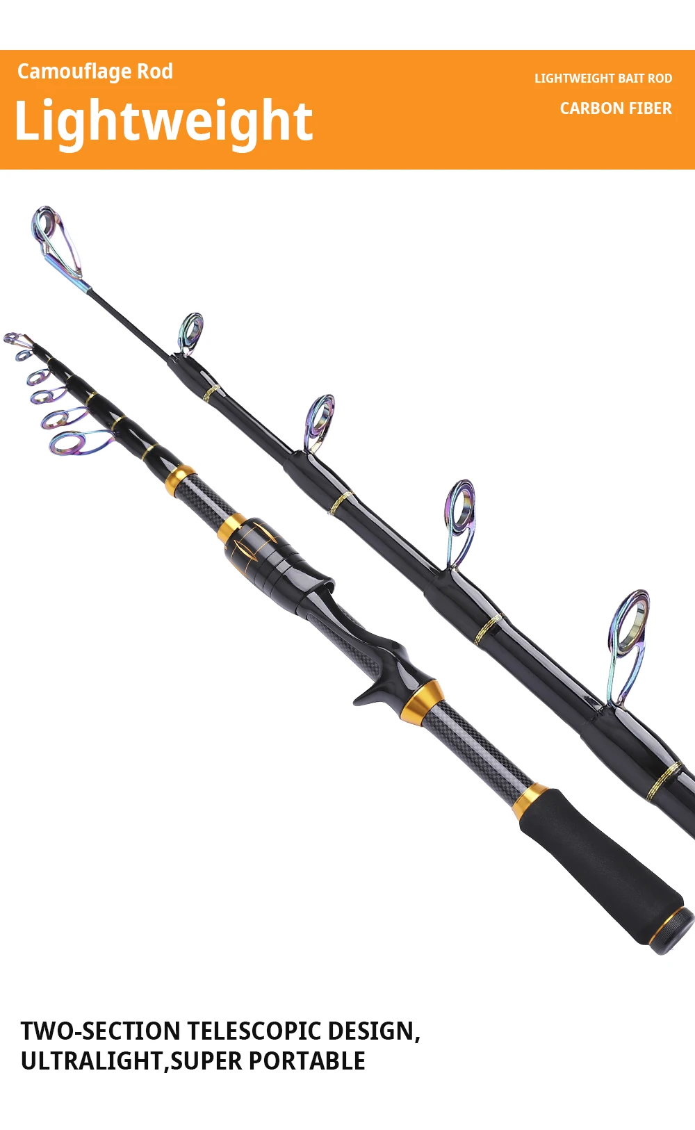 FTK-caña de pescar giratoria de fundición, postes de fibra de carbono ultraligeros de 1,5 M-2,1 M para viajes, Pesca de carpa de agua dulce