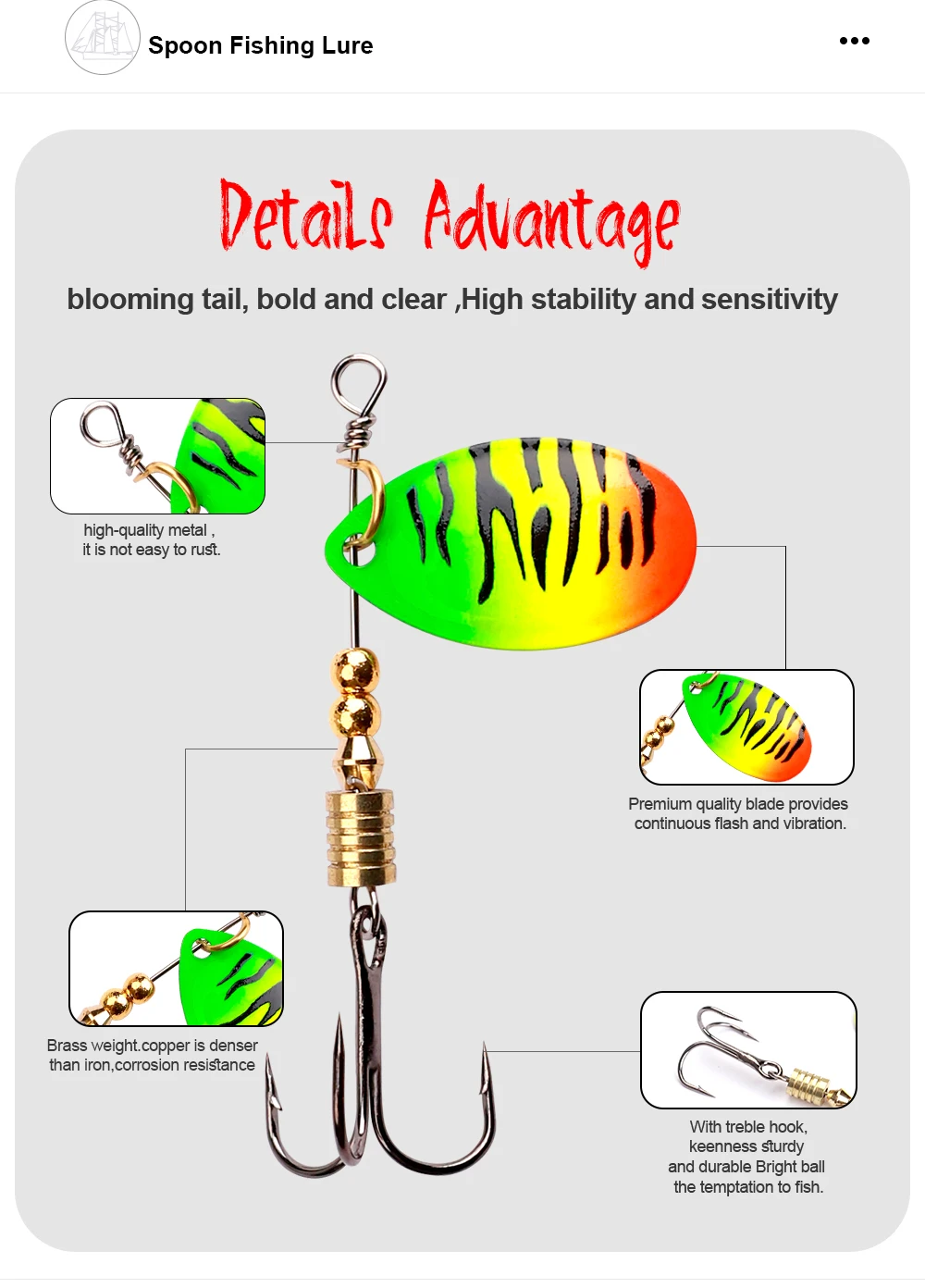 FTK-cebo giratorio de 4g, señuelos duros, cuchara, Señuelos de Pesca de Metal Artificial con anzuelos triples, aparejos de pesca para Lucio