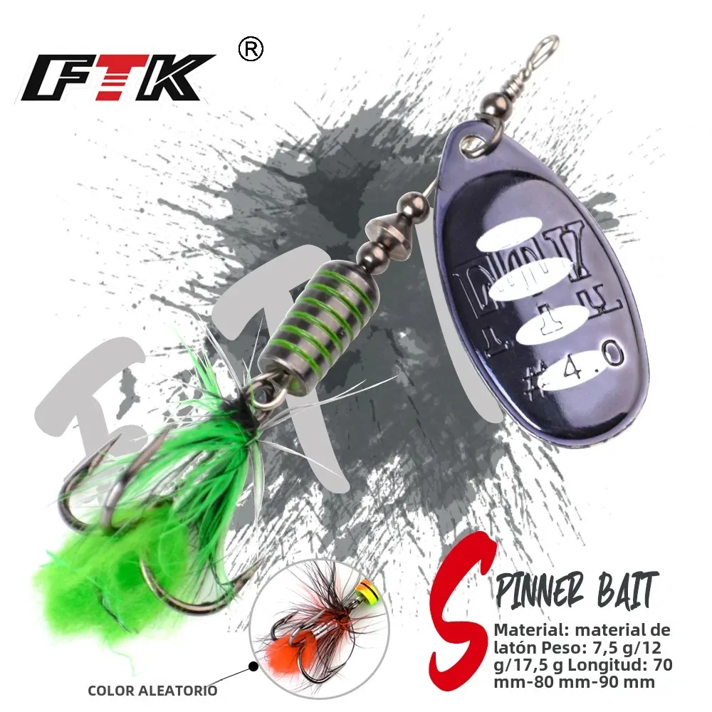 FTK-cebo giratorio de 7,5g, 12g, 17,5g, cuchara dura, señuelos de lubina, señuelo de pesca de Metal con anzuelos triples de plumas para pesca de Lucio, 1 ud.