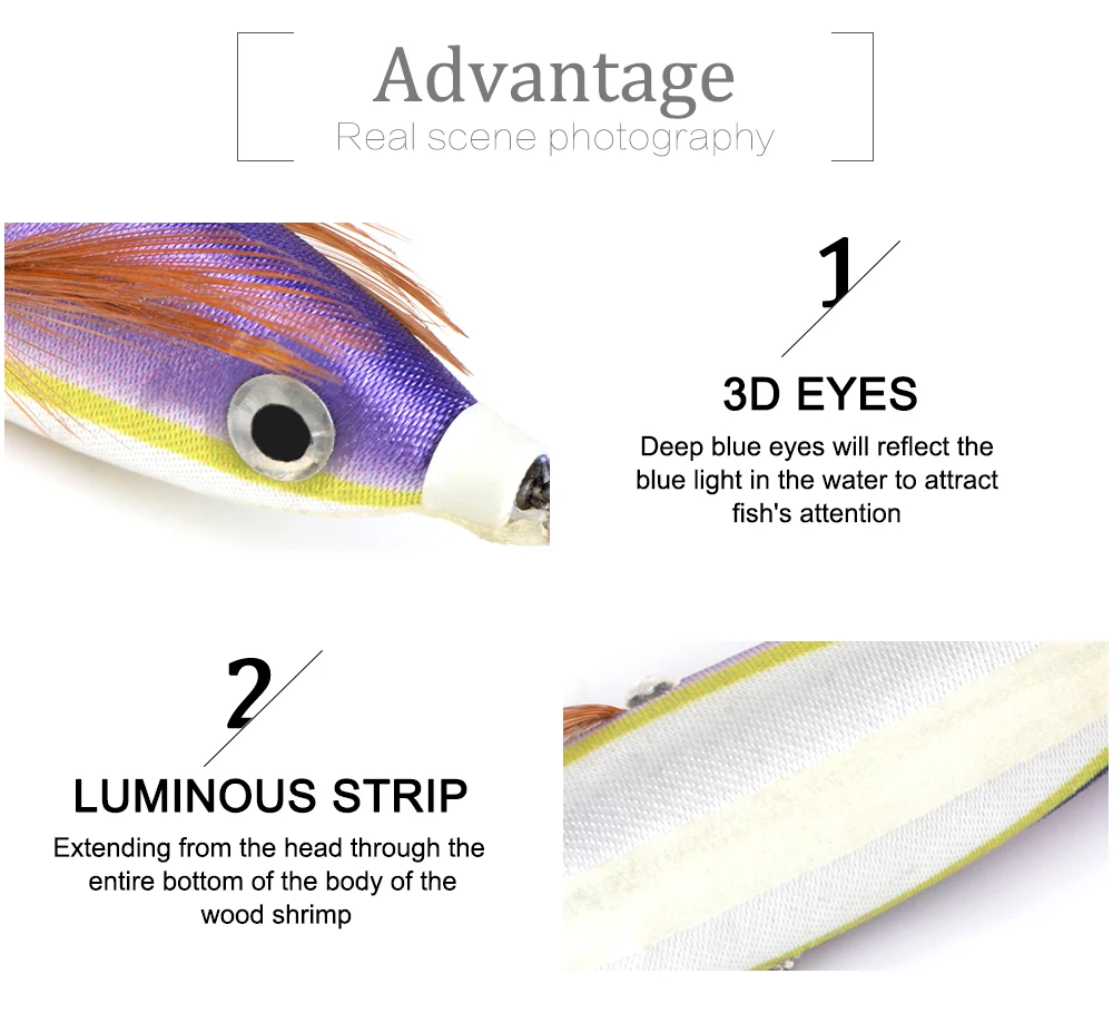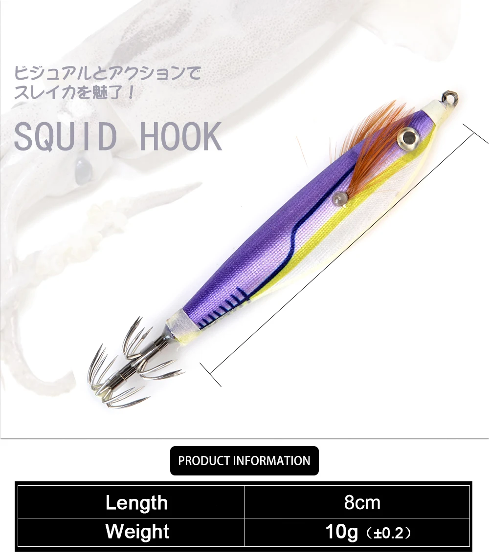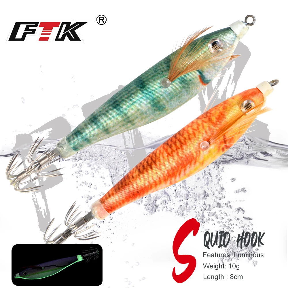 FTK-cebos de calamar para pesca al aire libre, anzuelo de calamar de 8cm/10g, cebo luminoso de madera para pesca de mar, camarón, pulpo y sepia