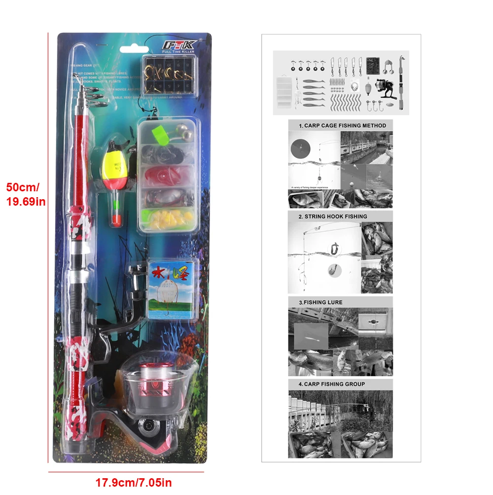 FTK-combinación de caña de pescar y carrete giratorio, caña telescópica de 1,8 M 30-60C.W con carrete de pesca 5,2: 1, Kit de pesca completo de arrastre máximo