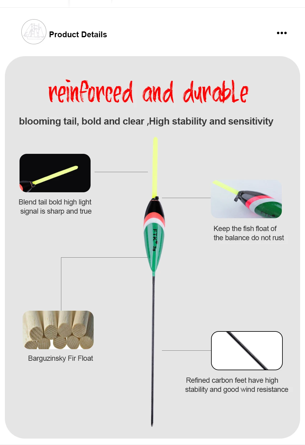 FTK-flotador de Pesca de 1-5g, boya Vertical, palo de luz, aparejos de Pesca, 10 unids/lote por paquete