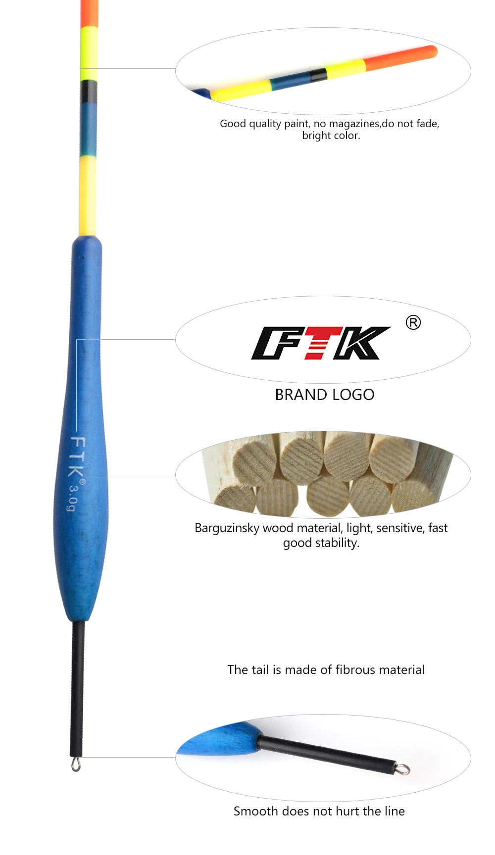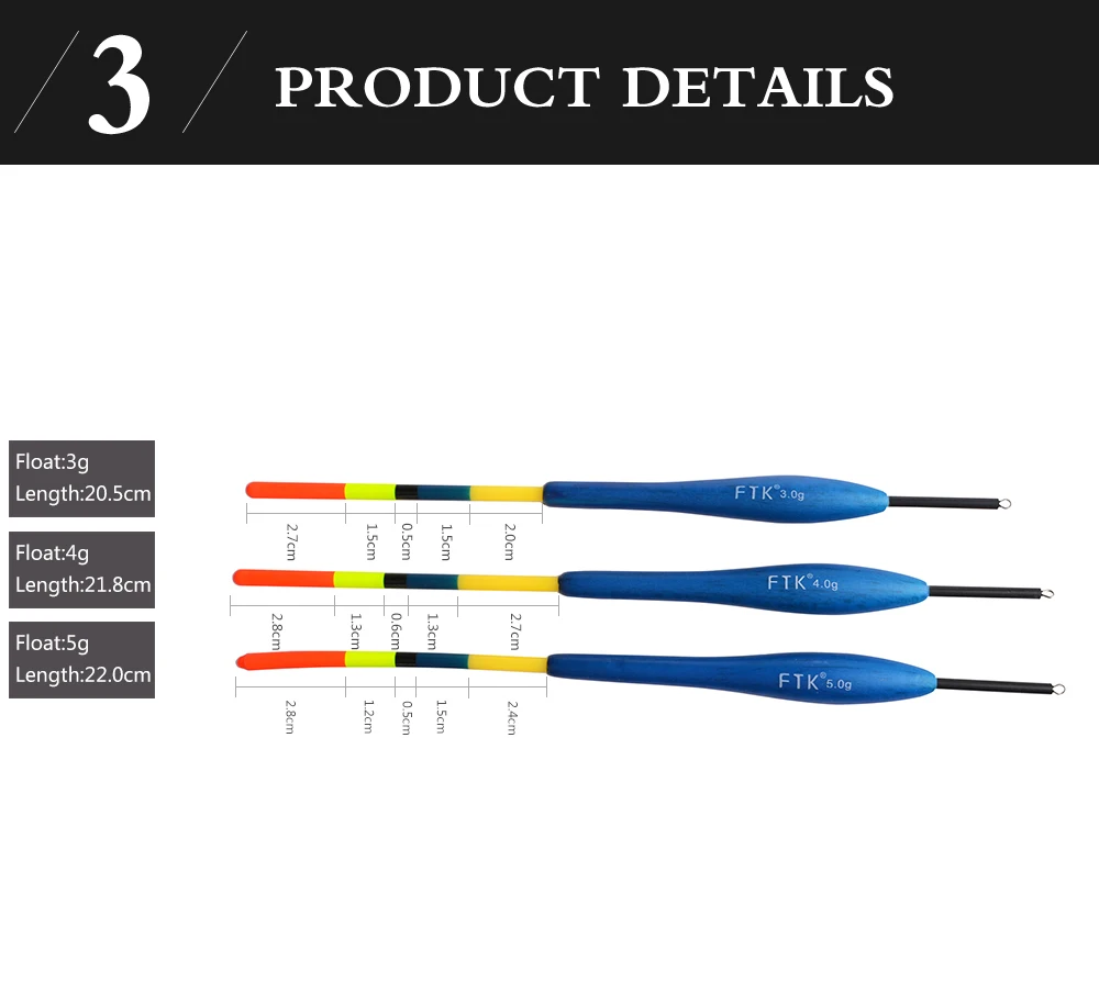 FTK-flotador de pesca para carpa, 5 unids/lote, Color mixto, 20,5 CM de longitud-22, 3G, 4G, 5G