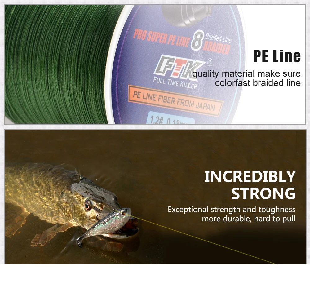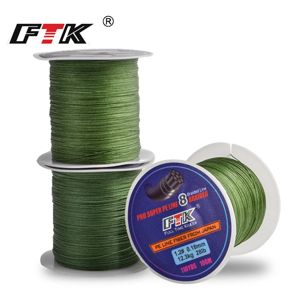 FTK-Hilo de pescar de 8 hebras, 100m, 0,16-0,40mm, 25-90lb, 10,5-40,3 kg, hilo de fibra multifilamento muy fuerte
