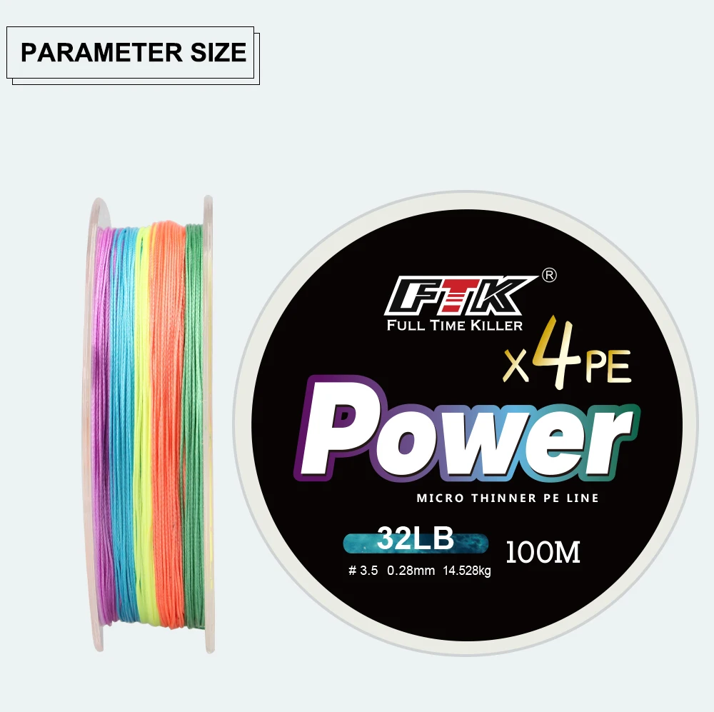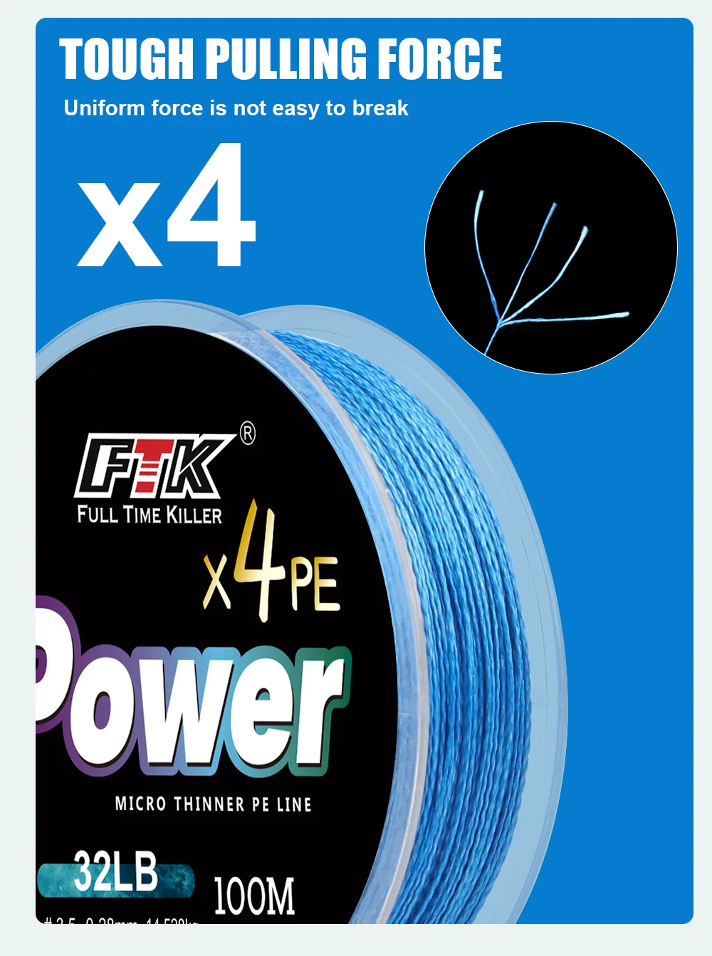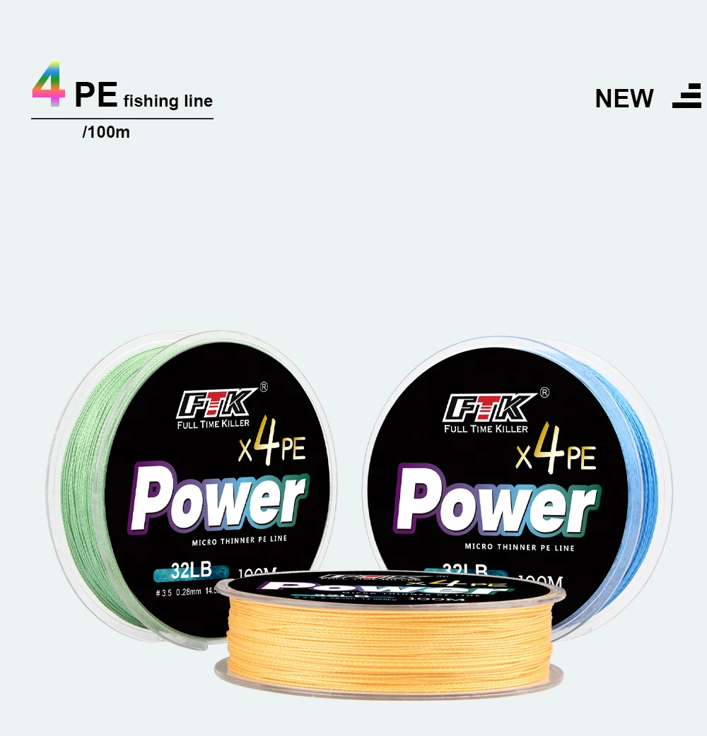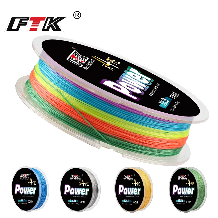 FTK-Hilo de pescar trenzado de 4 hebras, multifilamento de 100M/120M, 8LB-100LB, accesorios de pesca de carpa, línea de Pe