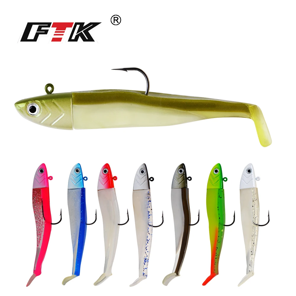 FTK Jig Head-señuelo de pesca suave, cabeza de ojos 3D, 5g, 12g, 25g, cuerpo, 7cm, 9cm, cebo Artificial de silicona, aparejos de pesca Swimbait