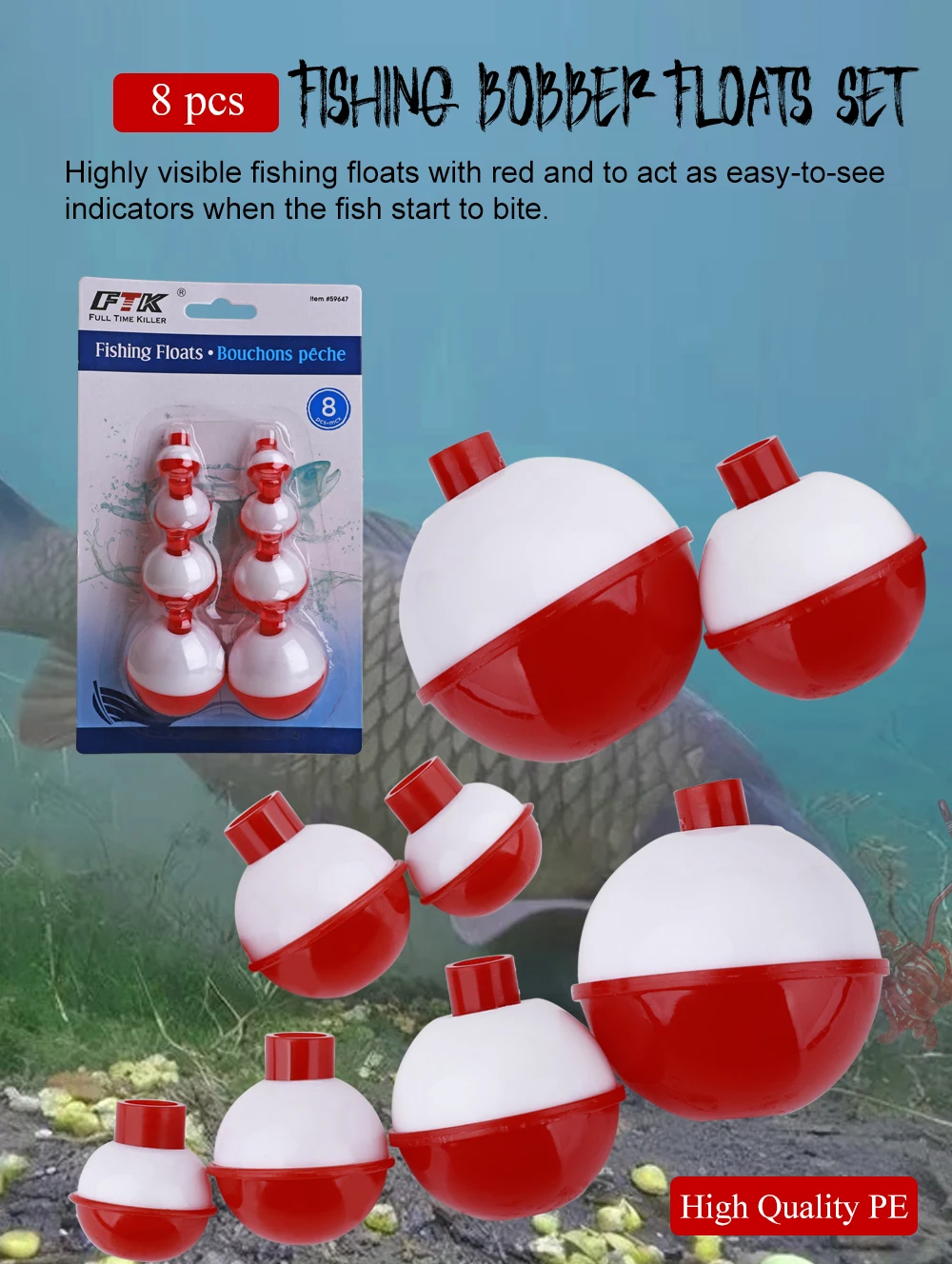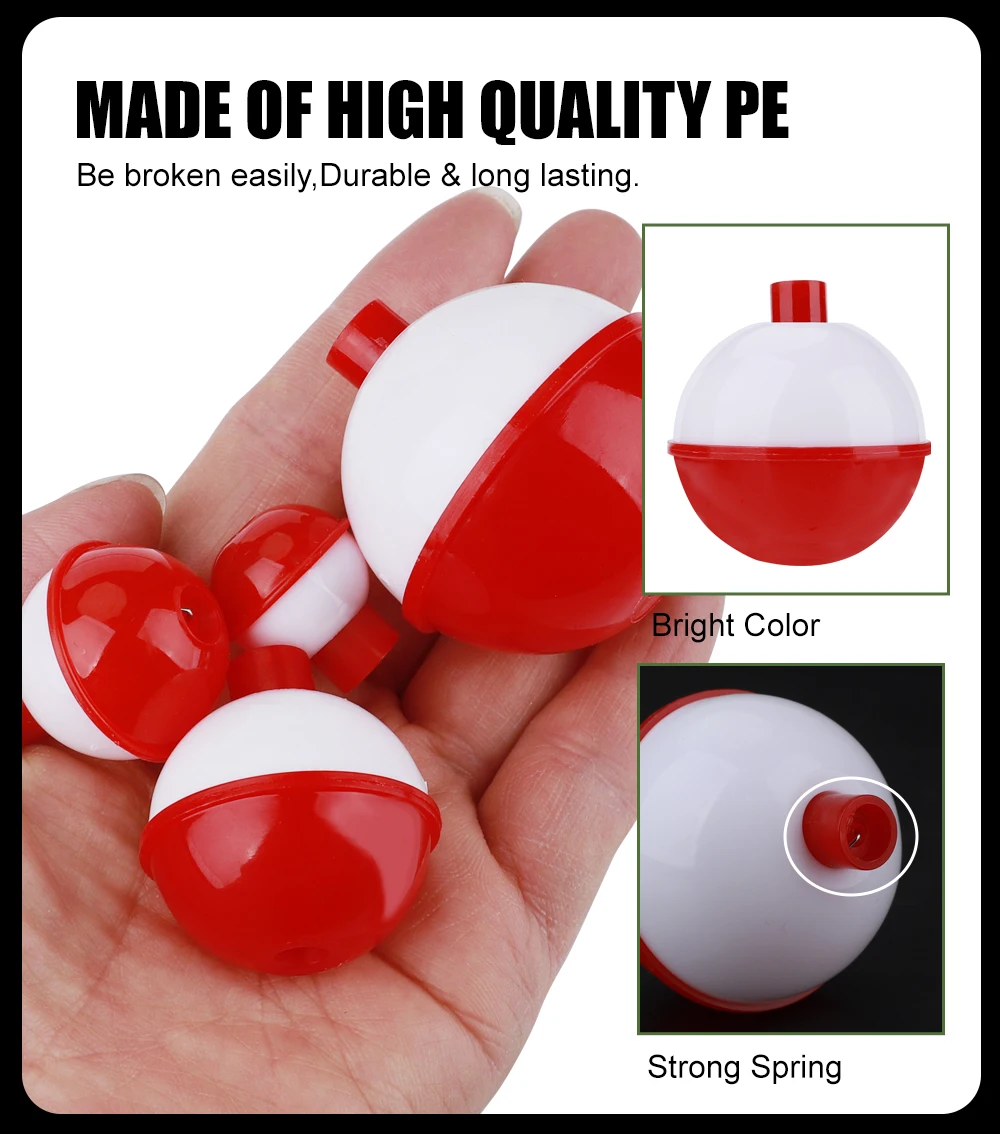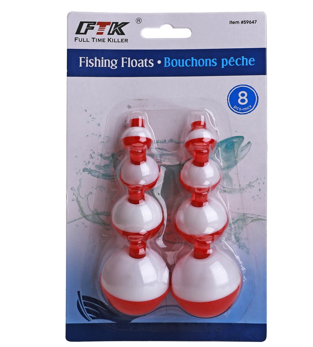 FTK-Juego de Bobbers de pesca, 8 Uds., tamaño mixto, 2-4,5 cm, flotadores de pesca ABS duros, Bobbers redondos, boya con botón pulsador, aparejos de pesca