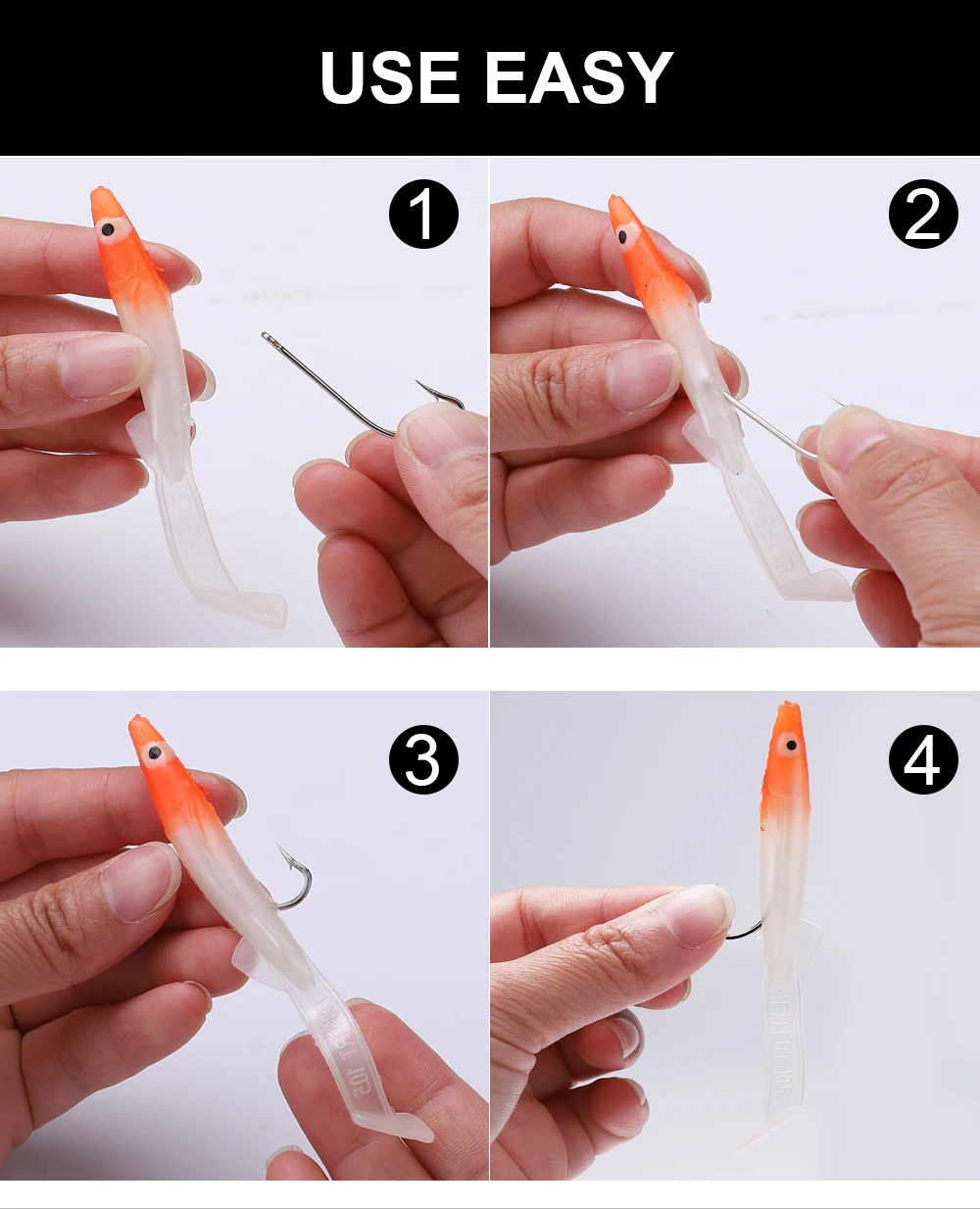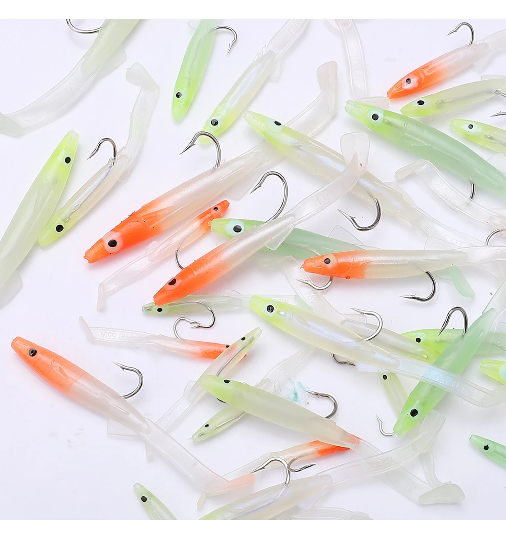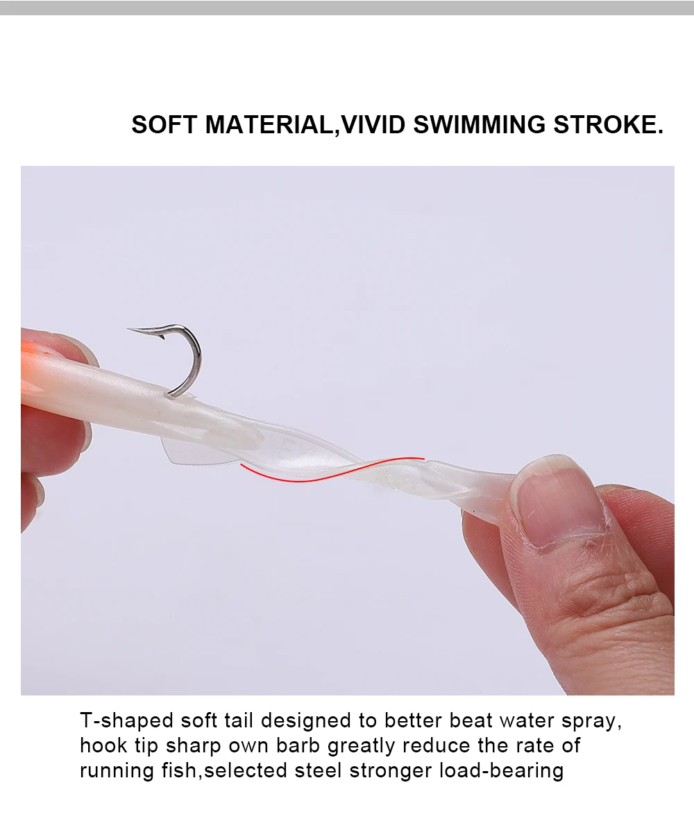 FTK-Juego de cebo suave de silicona, 5-10 Uds., 5,5/6, 5/8, 5/10,5 cm, plantilla de cola en T, Señuelos de Pesca artificiales con anzuelo