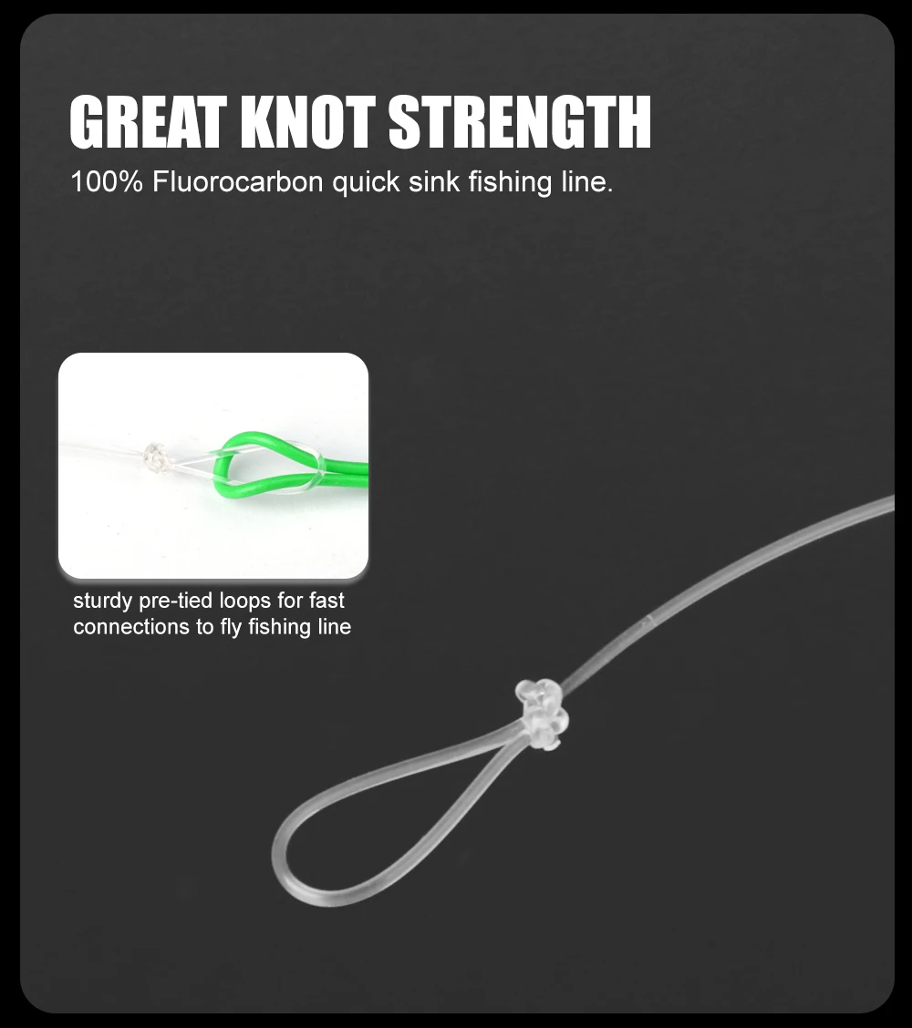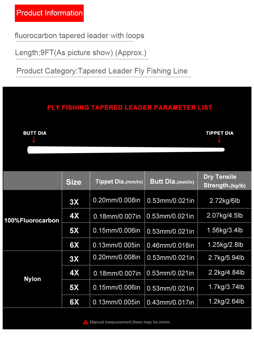 FTK-Líder cónico de pesca con mosca, línea de pesca con mosca, 9FT 3X-6X, líder con bucle 100% fluorocarbono o línea de nailon, accesorios