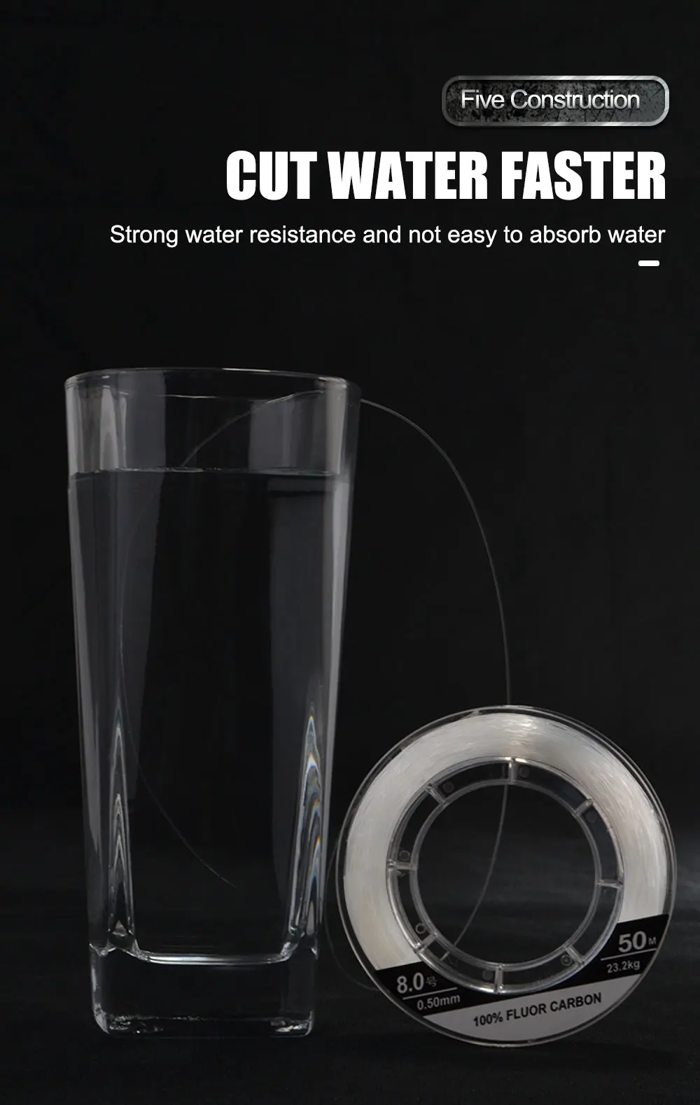 FTK-línea de pesca de 50M, 100% línea de carbono fluorado 0,8 #-10 #0,14mm-0,6mm, línea de hundimiento de carpa, construcción para pesca en el mar
