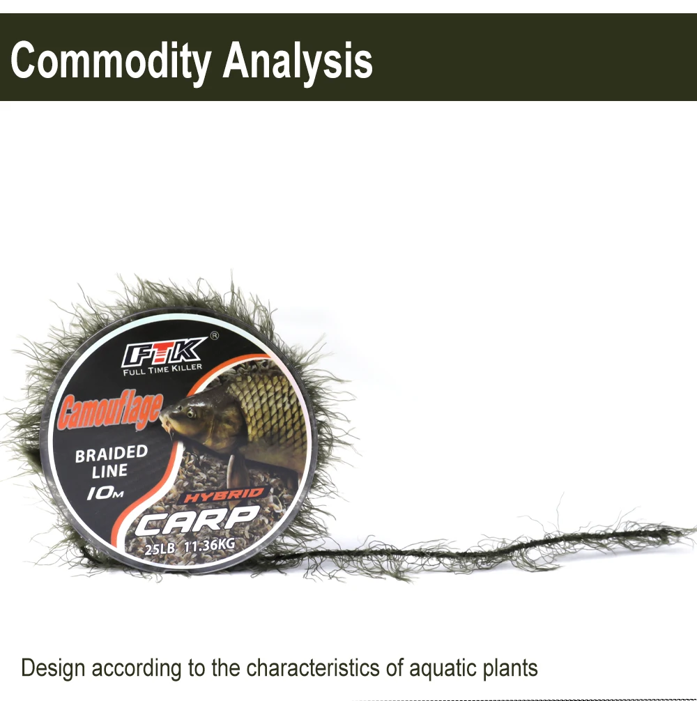 FTK-línea de pesca de carpa de 10m, 25/35lb, imitación de hierba, método, alimentador, señuelo, anzuelo, Seagrass, accesorios de hilo, aparejos