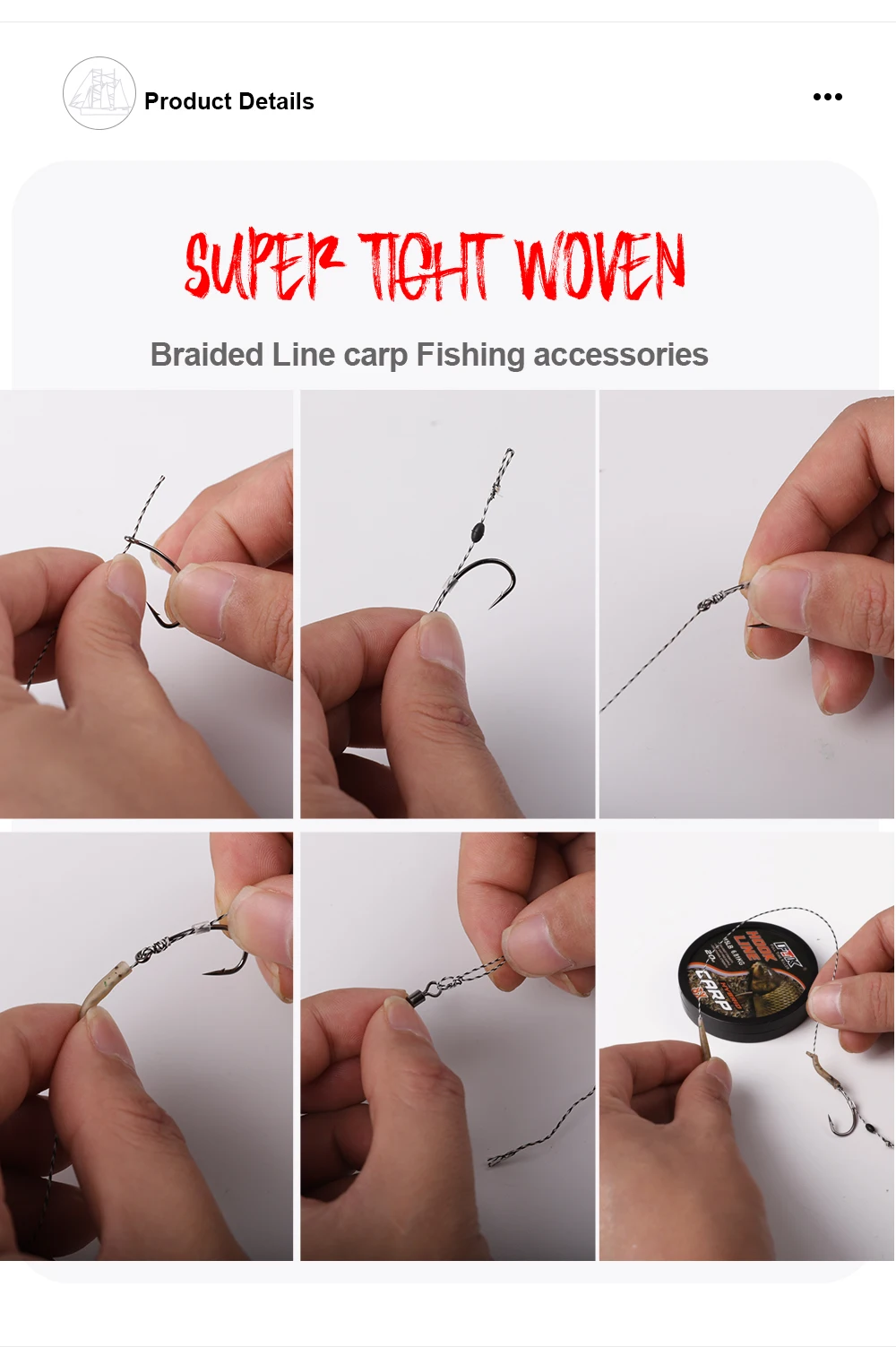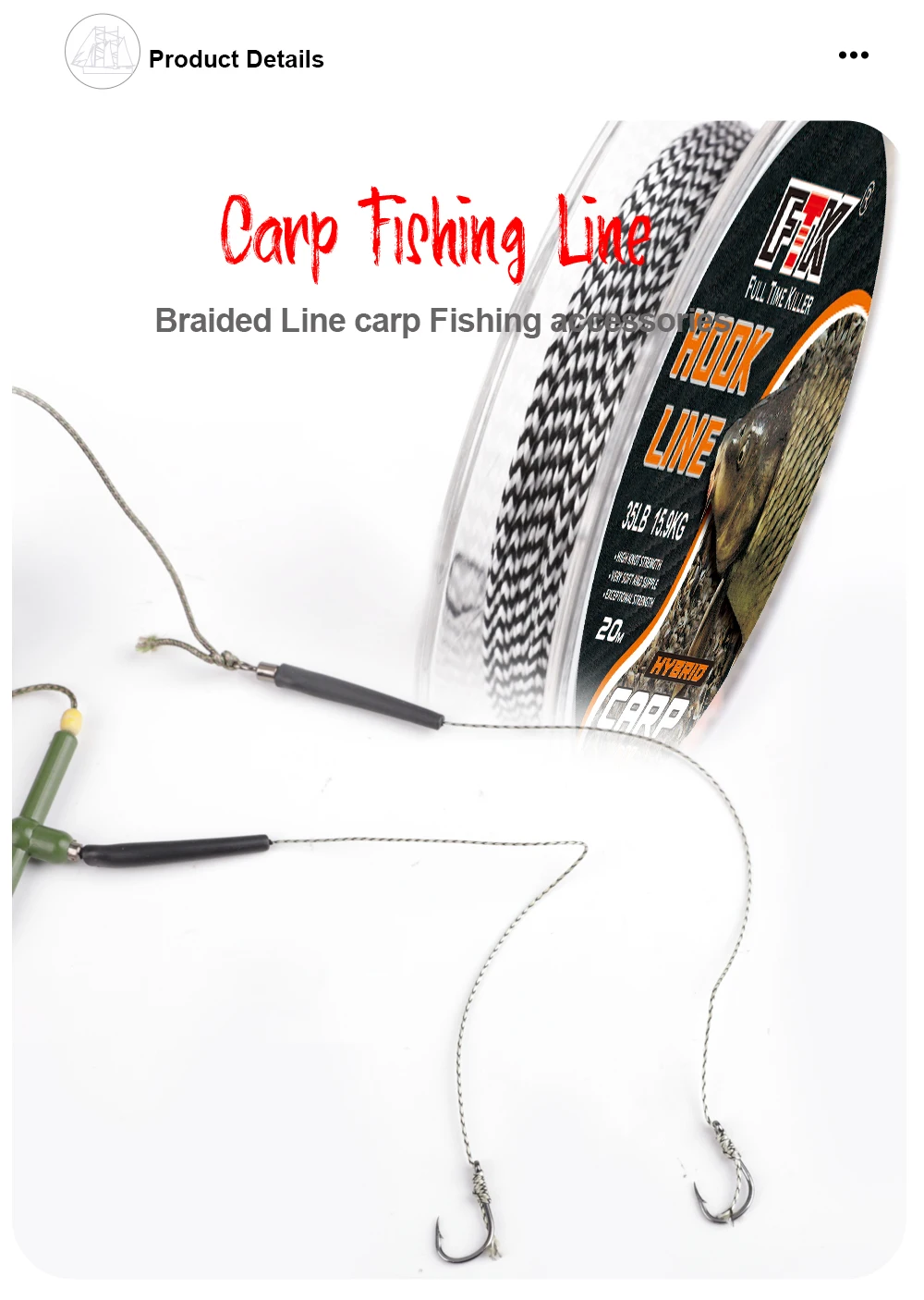 FTK línea de pesca de carpa, anzuelo suave, 15/25/35lb, línea trenzada sin recubrimiento, aparejo para el cabello, aparejos de pesca gruesos, 20m