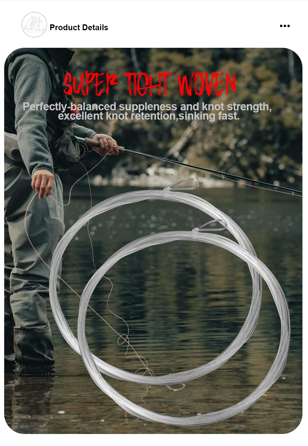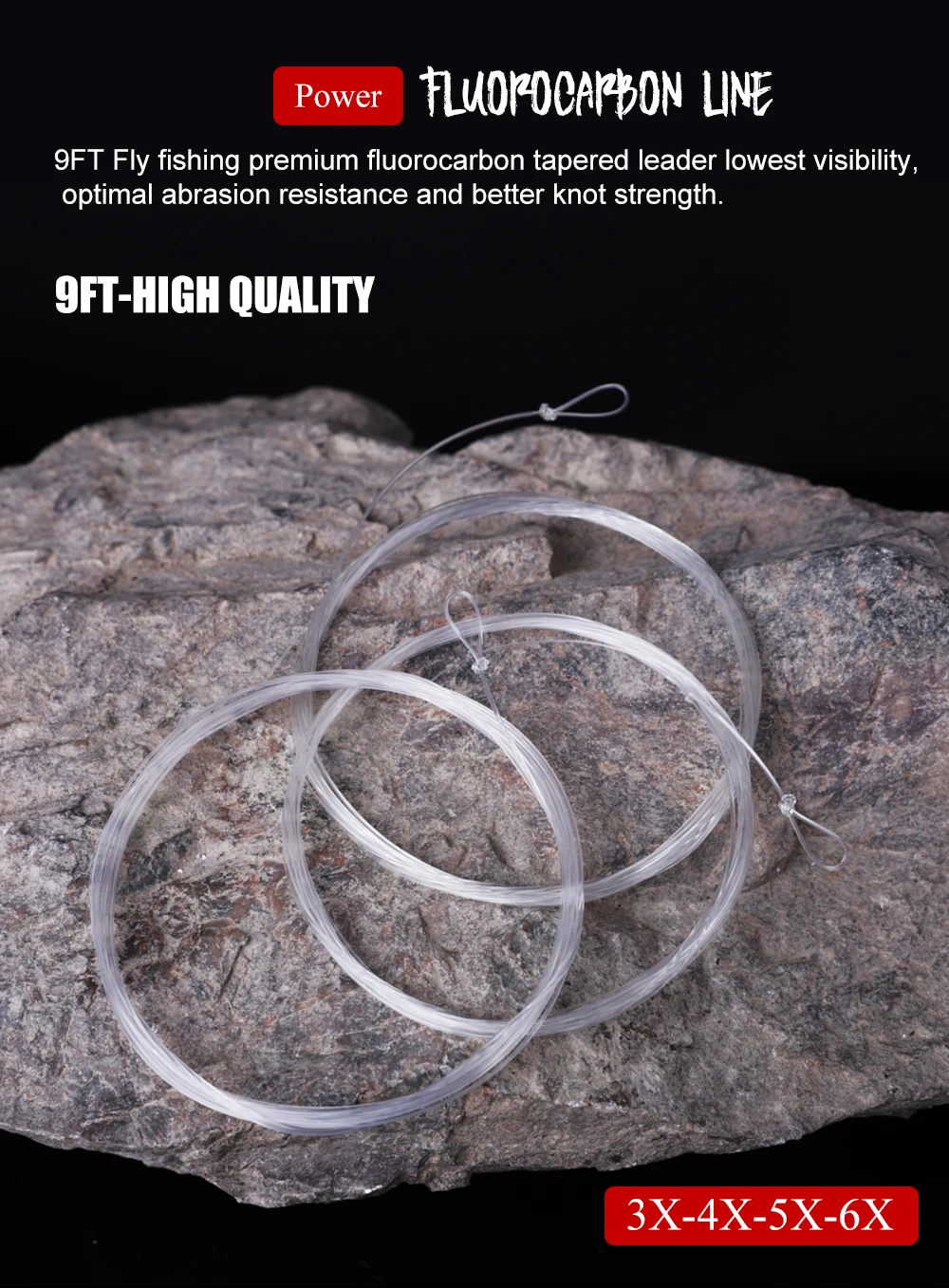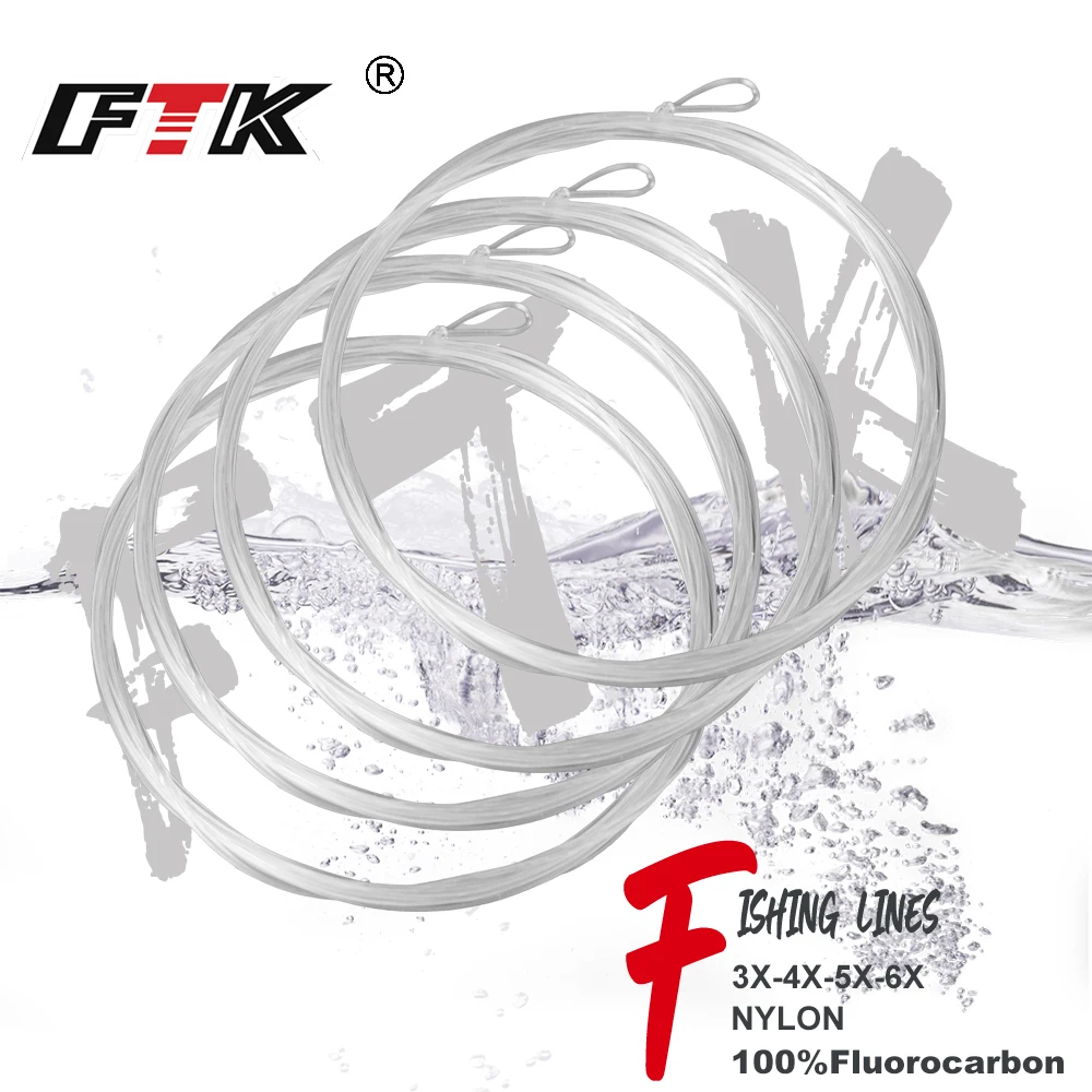 FTK-línea de pesca con mosca, líder cónico con bucle transparente 100% fluorocarbono o nailon, 9 pies, 3X/4X/5X/6X
