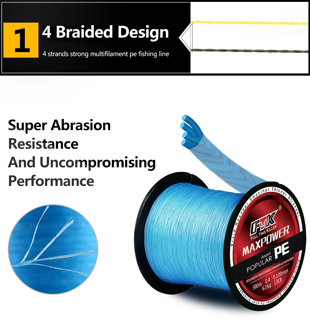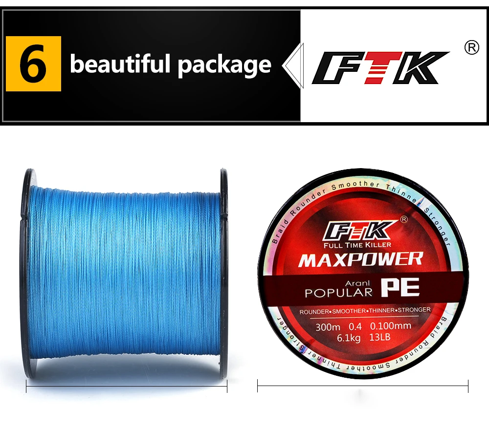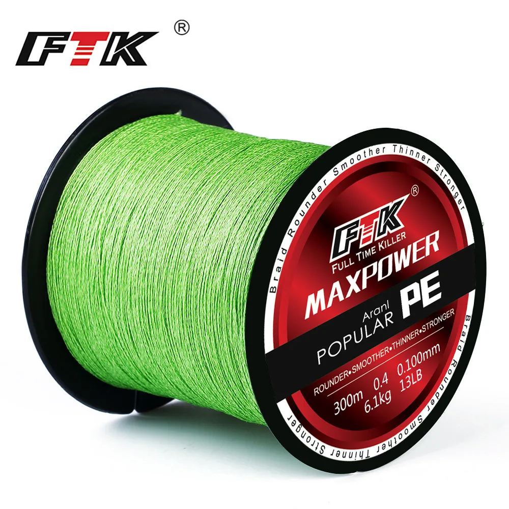 FTK-línea de pesca súper fuerte, 300M, PE, trenzada, código 0,4-6,0, 13-70LB, multifilamento, para pesca de carpa, mar, Surf, fundición