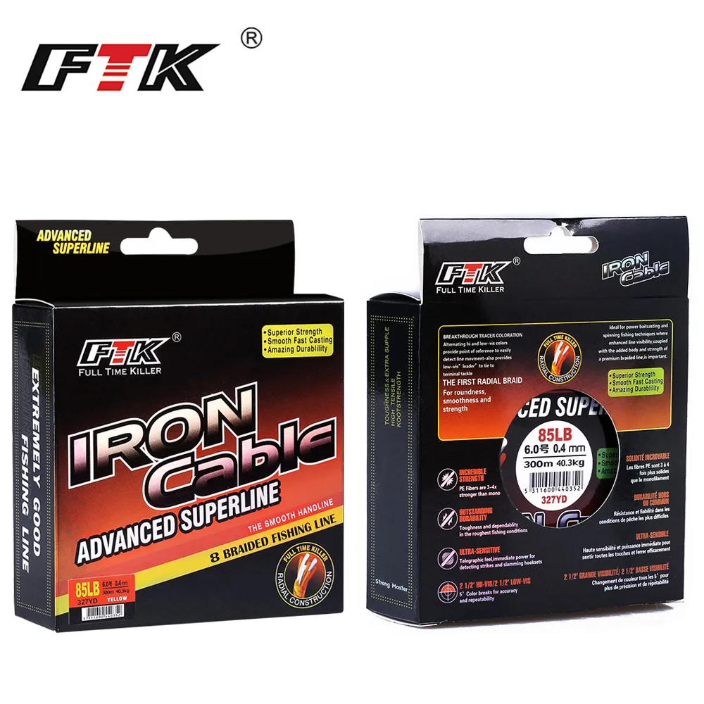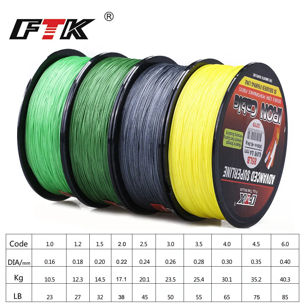 FTK-línea de pesca trenzada, 300m, 1,0-6,0 #, código 23-85LB, 4 colores, superresistente a la abrasión