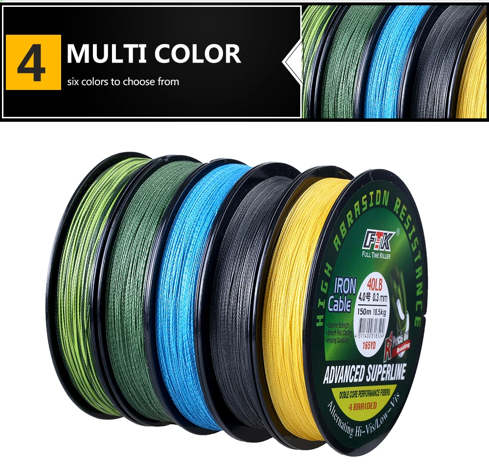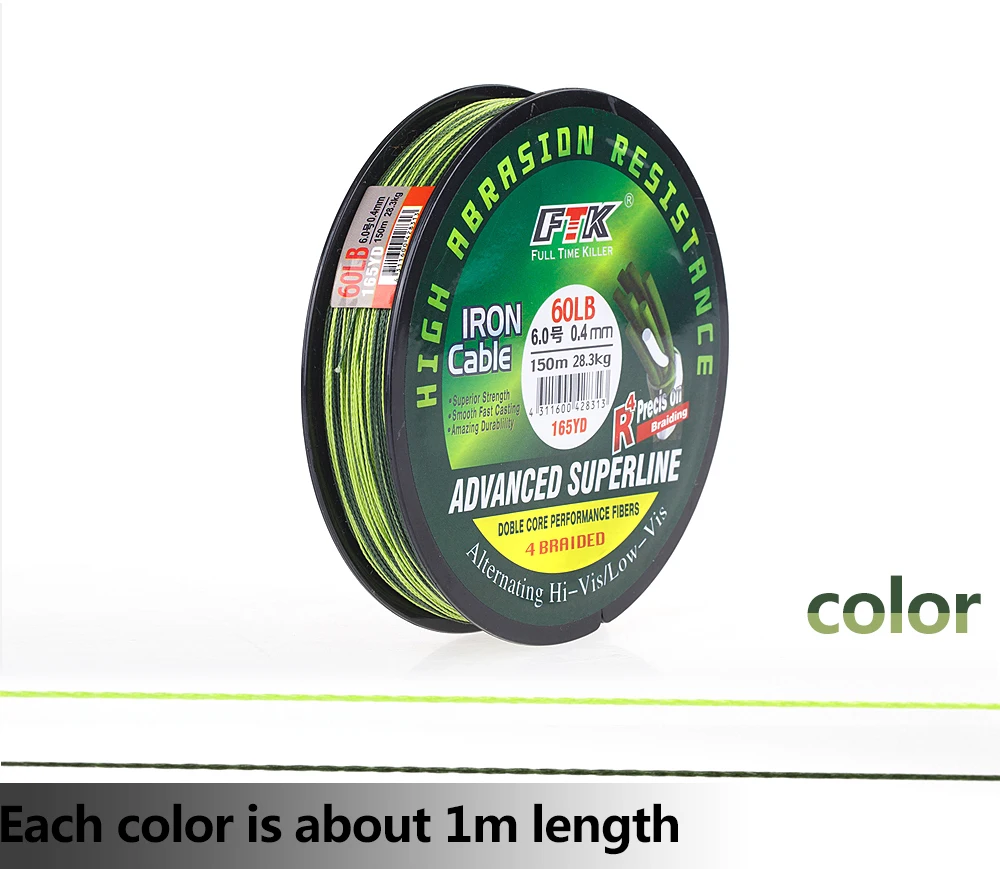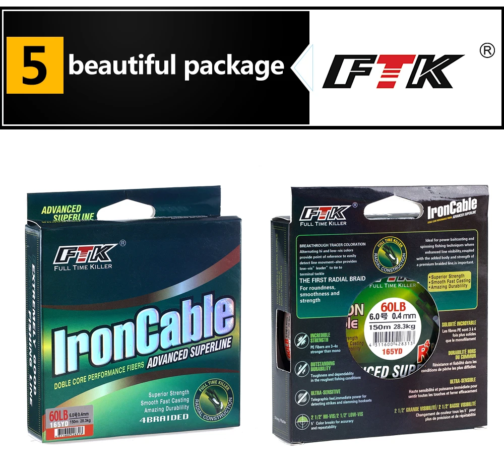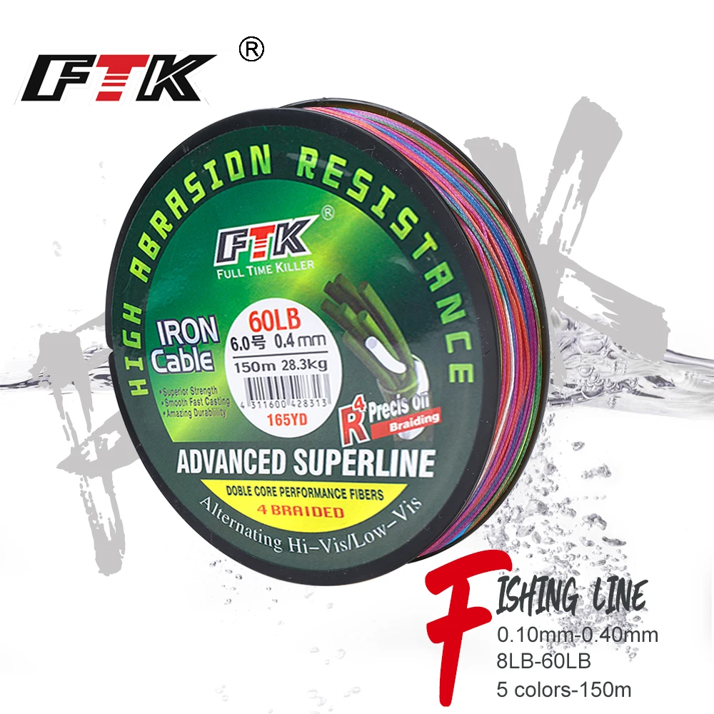 FTK-línea trenzada de 4 hebras, 150m, 5 colores, 8-60LB, multifilamento, PE, para pesca en agua salada