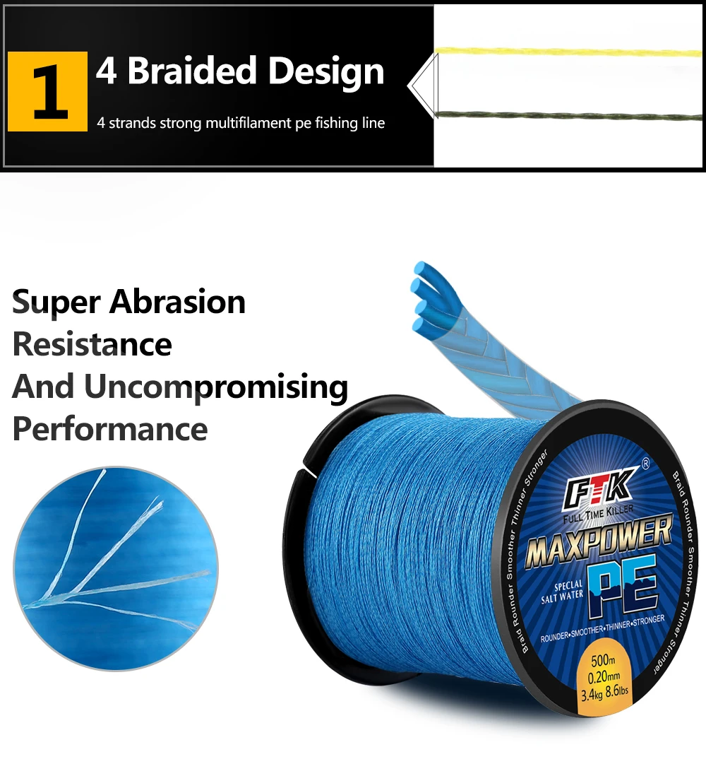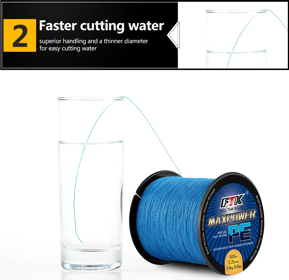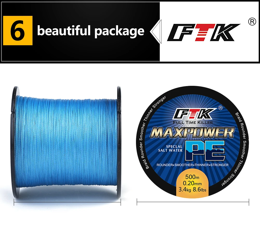 FTK-línea trenzada de PE, TP 500M, LB13-17, Code0.4-6,0 DIA/mm0.1-0,4, supermultifilamento, pesca de carpa