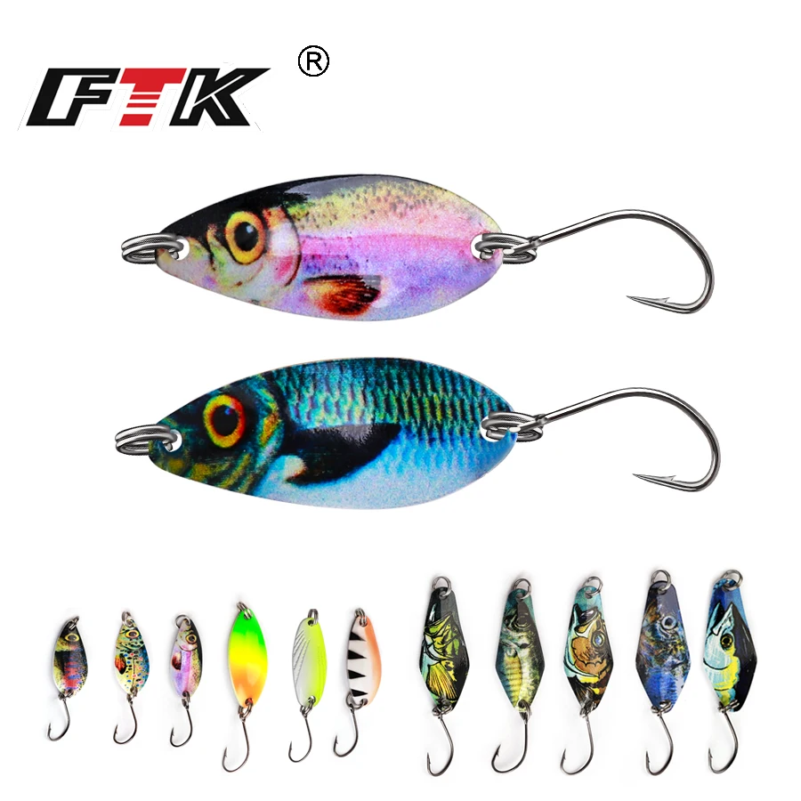 FTK Pesca Stream cebo trucha cuchara cebo MIU 2,5g 3,5g 5,5g Spinner cobre Metal cuchara de Pesca señuelo para trucha perca Lucio salmón